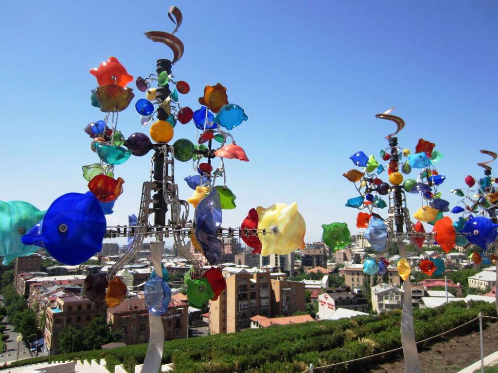Jatkamme oopperatalolle, joka vaikka aikoinaan arkkitehtuurikilpailun Pariisissa olisikin voittanut, on minusta melko ruma. Mutta aukio sen edustalla on selvästi kaupungin sydäntä – täällä lapset ajavat päivällä pienillä autoilla tai hevosilla ja illalla kansakunta osoittaa mieltään Azerbaidjania vastaan kun tarkka-ampujat rajalla ovat taas ampuneet jonkun.