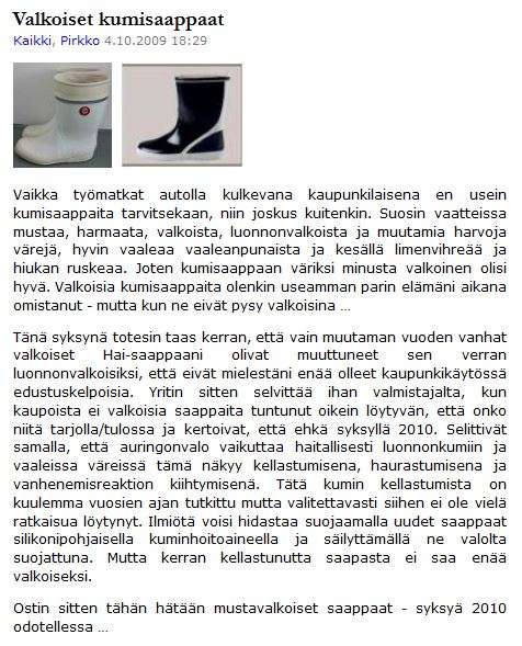 Tuo jokseenkin sattumalta vuodelta 2009 otokseeni valikoitunut juttu valkoisista kumisaappaista on muuten edelleen blogissani jokseenkin suosittu!