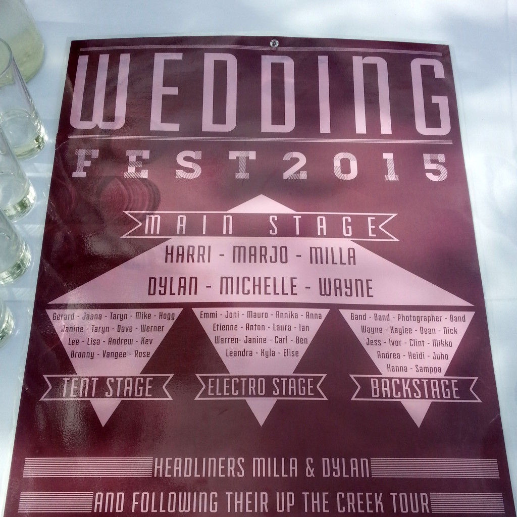 The wedding ceremony was outside under the late afternoon sun. The actual ceremony was shorter and much more relax compared to the Finnish one. In the ceremony the minister also read a speech from the grandfather of the bride because the grand parents did not participate the wedding in South Africa. After the ceremony we all got champagne and it was time to take some photos and get to know the guests. All the guests got buttons which had the guest’s name and the country they were from and also how did the guest know the bride or the groom. Before the ceremony all the guests also got a small rice bag which is typical from Finnish wedding but also not so typically a sun glasses which were used to take group photos.