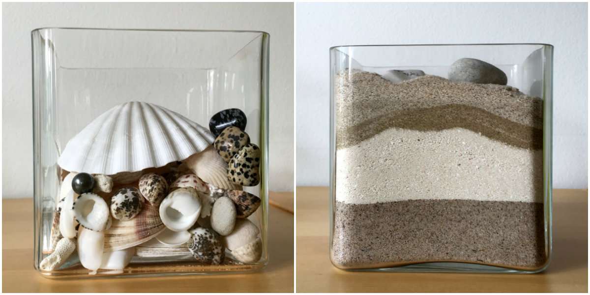 Kiitos Tanja! Meillä on ollut enemmänkin tuota materiaa, eli hiekkaa, simpukoita ja kiviä. Purjeveneellä liikkuessa kun tuli koluttua aika paljon rantoja. Mutta tein niillekin karsintakierroksen jokin aika sitten ja nyt ollaan tuossa kuvissa näkyvässä määrässä.
