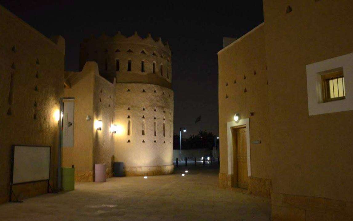 Päivän päätteeksi teemme vielä iltaretken katsomaan Diriyahin raunioita. Itse tähän Unescon maailmanperintökohteeseen emme meneillään olevien kunnostustöiden takia pääse, mutta näemme sen iltavalaistuksessa läheisestä puistosta. Kuten tuhannet puistoon iltaa viettämään tulleet paikallisetkin, joiden takia valokuvaaminen on hiukan haasteellista, sillä paikalla olevat poliisit ovat tarkkoja siitä, ettemme kuvaa yksittäisiä ihmisiä. Virkaintoisimmat kieltävät välillä raunioidenkin kuvaamisen, mutta oppaamme esiteltyä ryhmämme saamme taas luvan kuvata.
