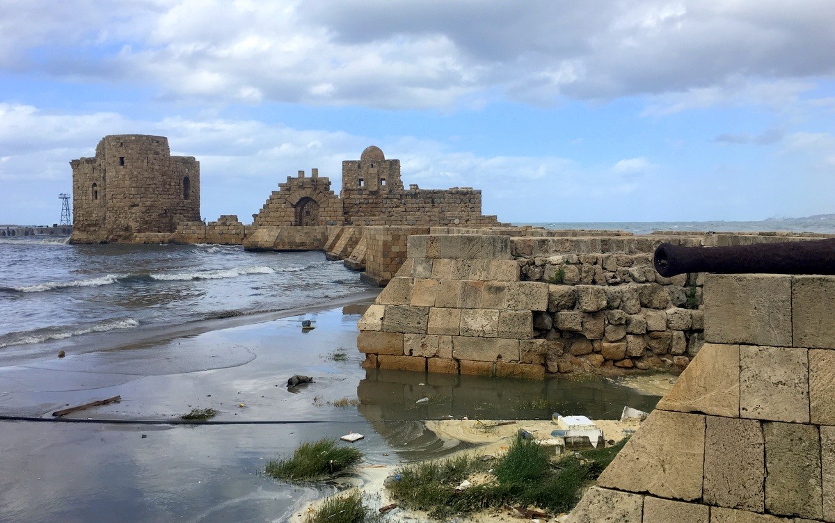 Aloitimme Sidonista meren rannalla. Hiukan harmaana päivänä reipas tuuli nostatti aallot korkealle Merilinnoituksen valleille, mutta mehän pidämme merestä ja tarkalla ajoituksella linnoituksessa saattoi hyvinkin kierrellä ilman, että mikään aalto oikeasti ehti kastelemaan ketään.