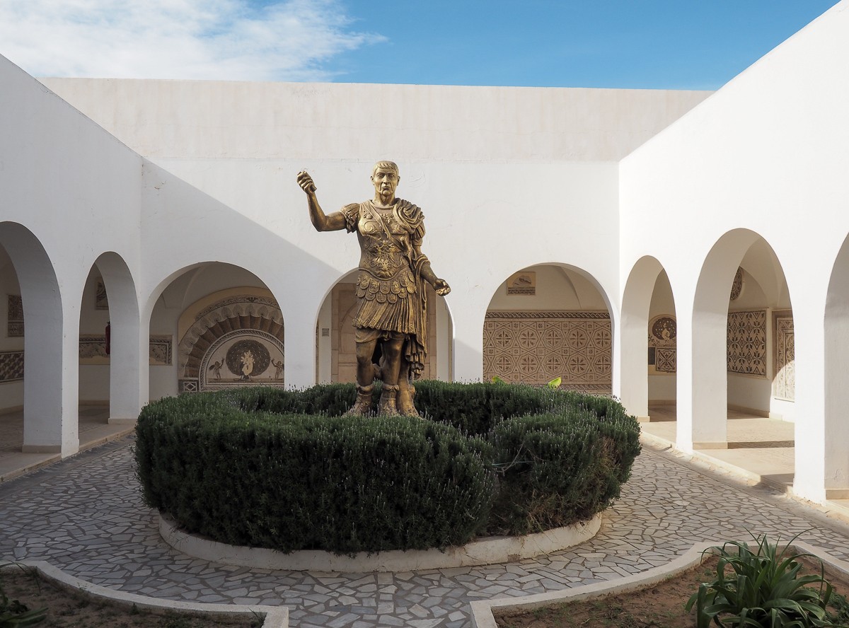 Poikkesimme myös El Jemin mosaiikkimuseossa, jonne oli koottu Tunisian rikasta mosaiikkiperintöä naputtelemassa lattioita irti muutaman sentin syvyydeltä siten, että laatat oli saatu kuljetettua museoon. Museossa useimmat valtavistakin laatoista oli enimmäkseen ripustettu seinille, sillä lattioina ne tietysti vuosien mittaan kuluisivat pois.