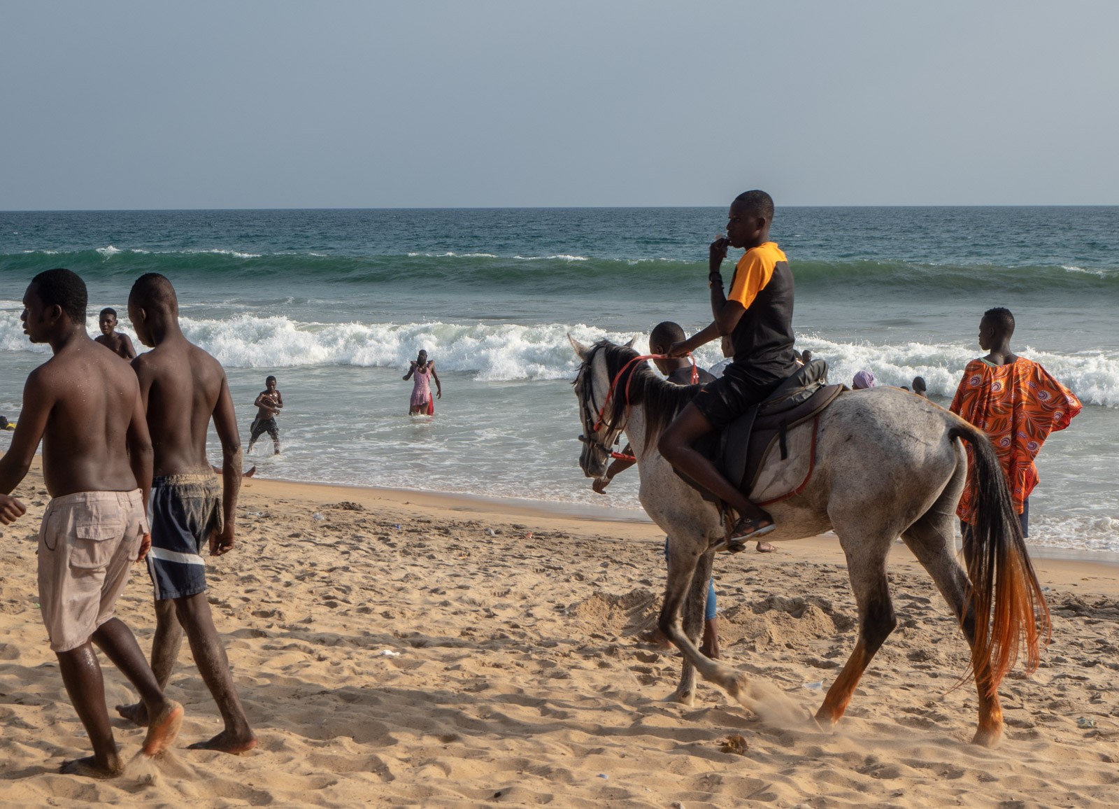 Sunnuntait vietetään sankoin joukoin pitkällä valkoisella hiekkarannalla – varakkaimmat, Abidjanista viikonlopun viettoon tulleet, asuvat samassa hotellissa kuin me ja kansoittavat hotellin pienen uima-altaan viimeistä paikkaa myöten.