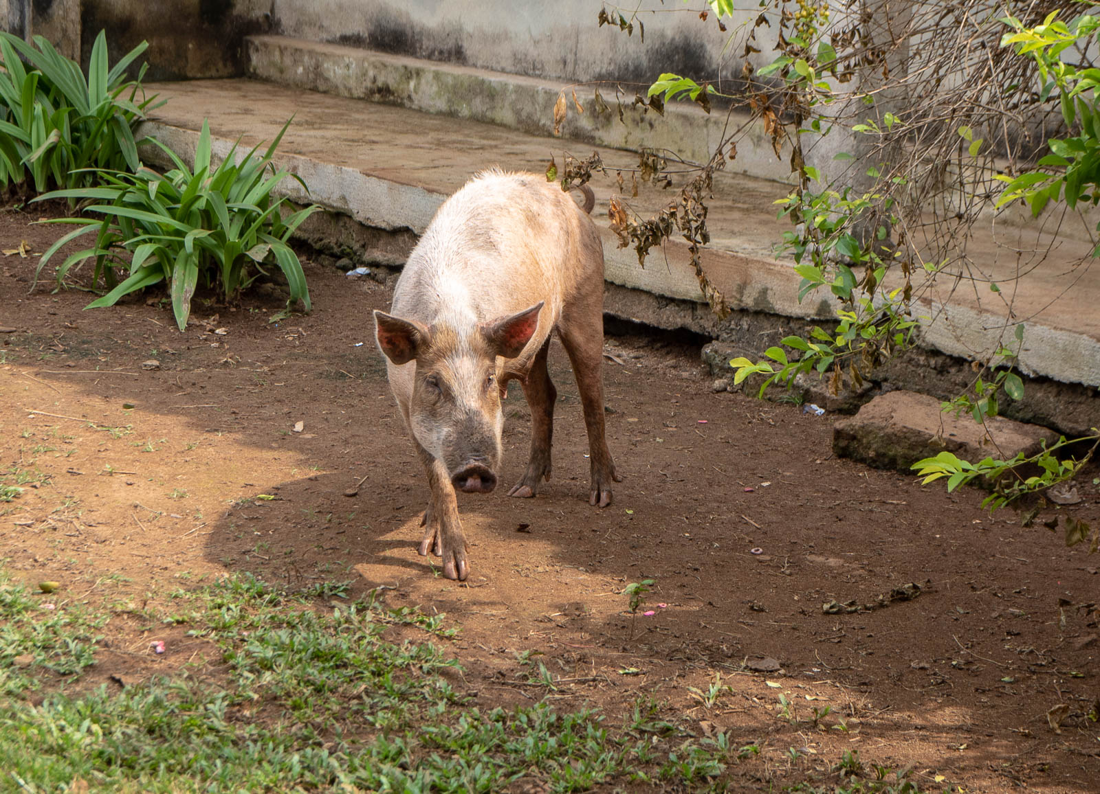 Ja lukuisia vuohia, sikoja ja lehmiä, niin tiellä kuin tien varrella.