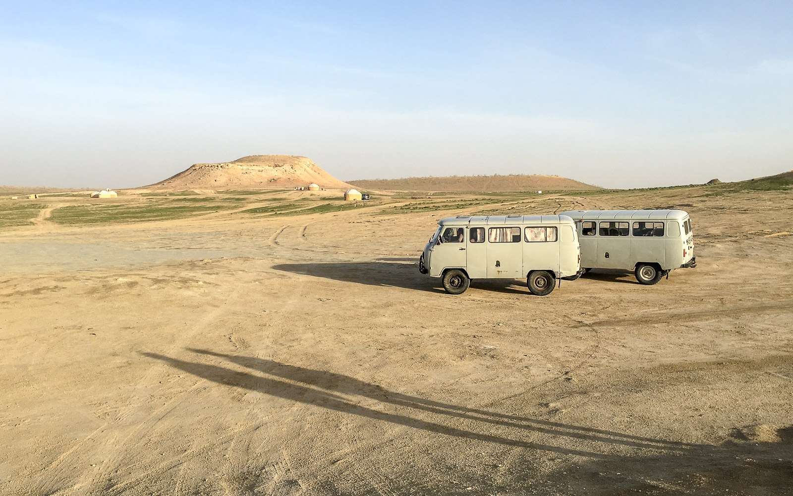 Pitkän päivän retkemme alkoi hotellilta aamukymmeneltä. Darvazaan tulo kannattaa ajoittaa auringonlaskun aikaan, jotta kaasukraatterin näkisi niin päivänvalossa kuin pimeässäkin. Lähdimme kuitenkin ajoissa, jotta ehdimme tutustua matkan varrella pariin muuhunkin kraatteriin ja poikkeamaan lounaalla pienessä kylässä Turkmenistanin maaseudulla.