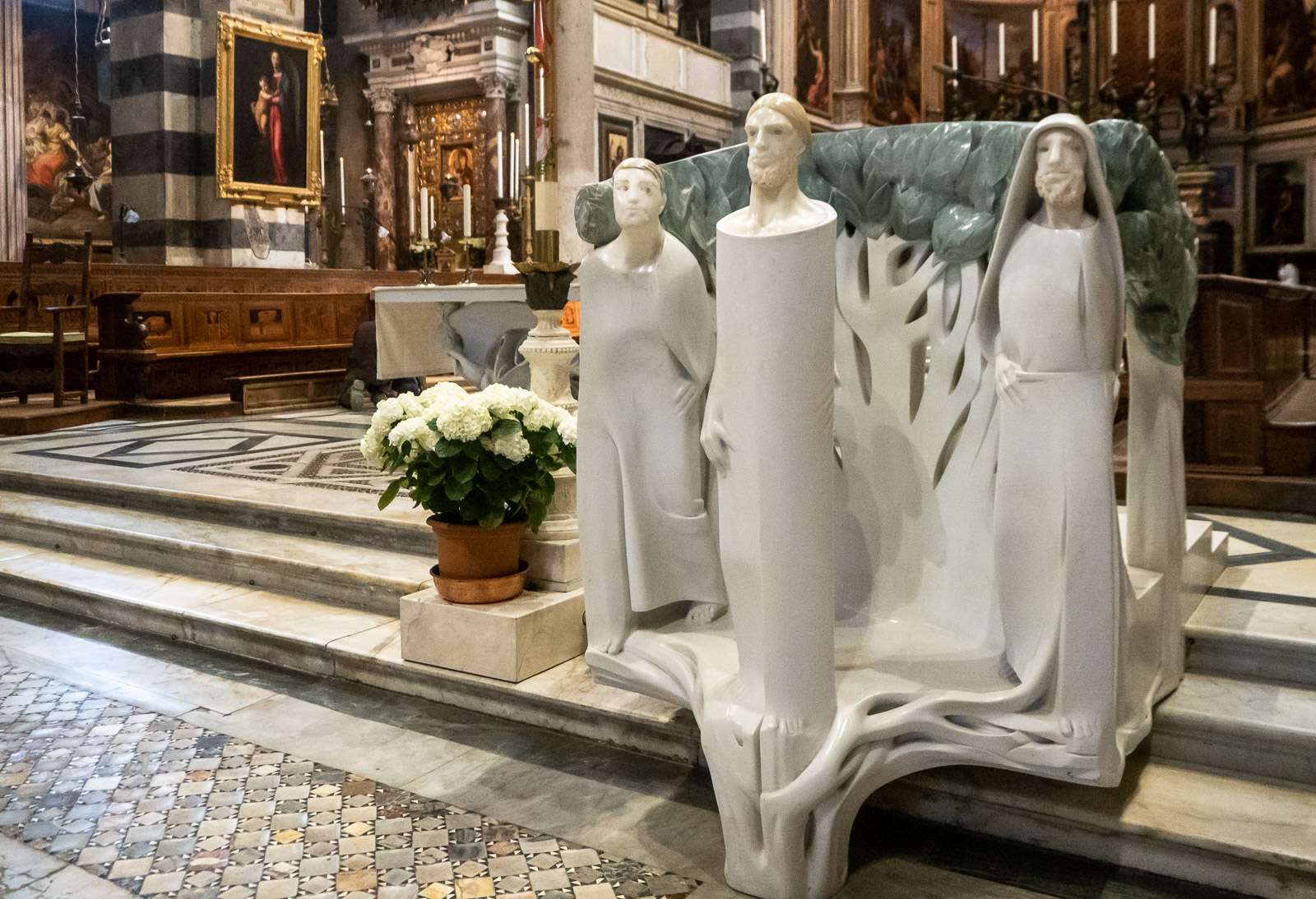 Giovanni Pisanon suunnitteleman saarnastuolin etupuolella olevat vihreät marmoripylväät ovat Mussolinin lahja (?) katedraalille. Osa saarnastuolia kannattavista pylväistä oli tuhoutunut ja Mussolini halusi lahjoittaa korvaavat pylväät, jotka sitten “vahingossa” asennettiin siten, että ne päätyivät saarnastuolin etupuolelle, hyvin näkyville.