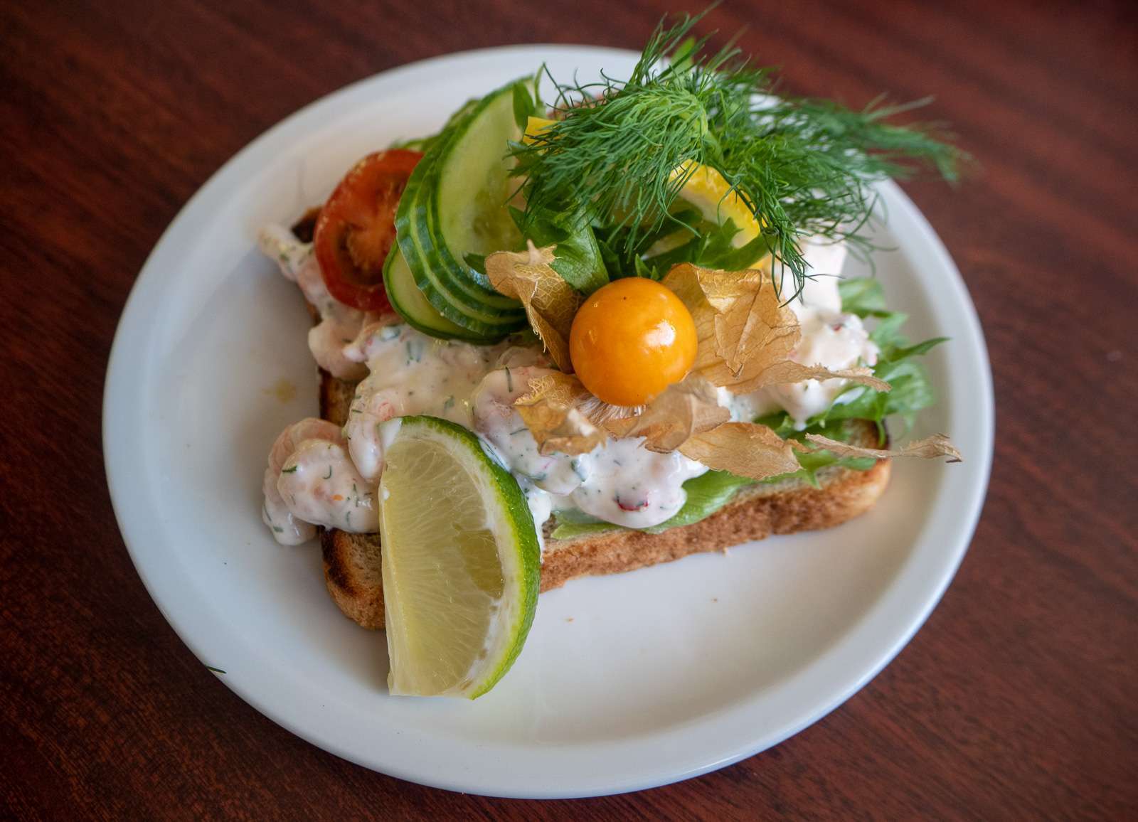Me söimme mennessä lounaan, mutta paluumatkalla tyydyimme katkarapuleipään.