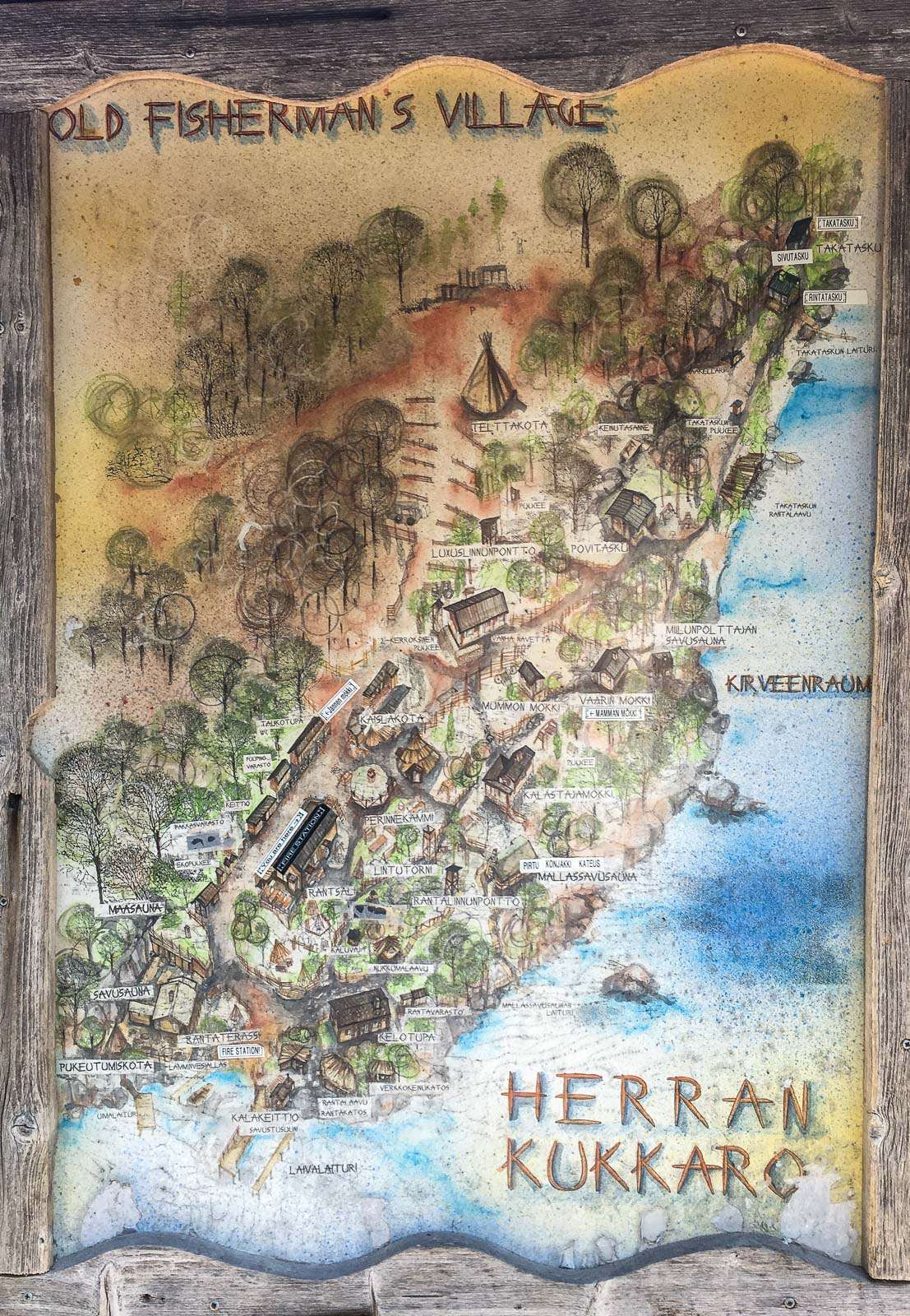 Vaikka Herrankukkaro onkin tarkoitettu ryhmille, saimme kalastajatilaan tutustuvina bloggaajina tilaisuuden yöpyä Kirveenrauman sillan kupeeseen rakennetussa pienessä Rintataskut -nimisessä mökissä. Ja sehän sopi meille, entisille purjehtijoille, jotka illan mittaan useampaan otteen muistelivat Kirveenrauman sillan alituksia S/Y Meriharakka.