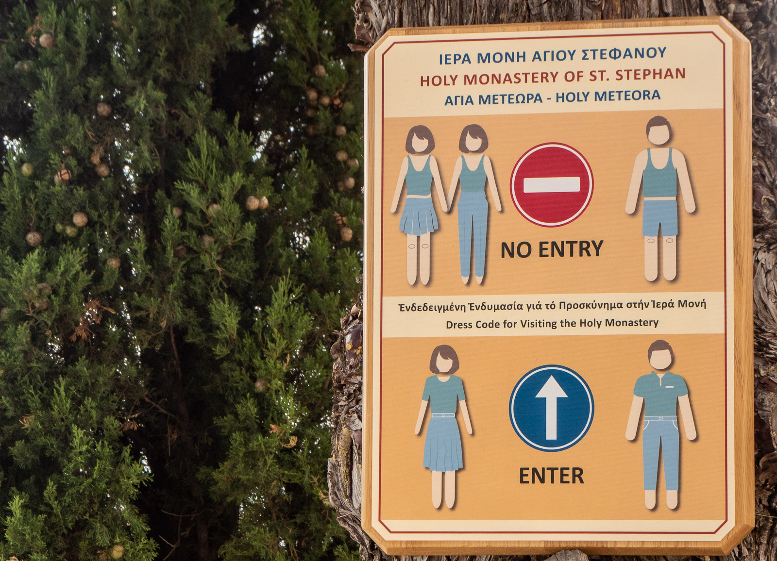 Jos ensimmäinen luostarivierailumme St. Stepheniin olikin aivan liian helppo antaakseen kuvaa “keskimääräisestä” luostarivierailusta Meteorassa, niin seuraavan aamun aloitus Holy Trinityn luostarista ottikin sitten luulot pois heti kättelyssä. Vasta myöhemmin luinkin jostain, että tämä on luostareista vaativin, siis kapuamisen osalta. Kallion juurelta askelmia ylöspäin on kuulemma 140.