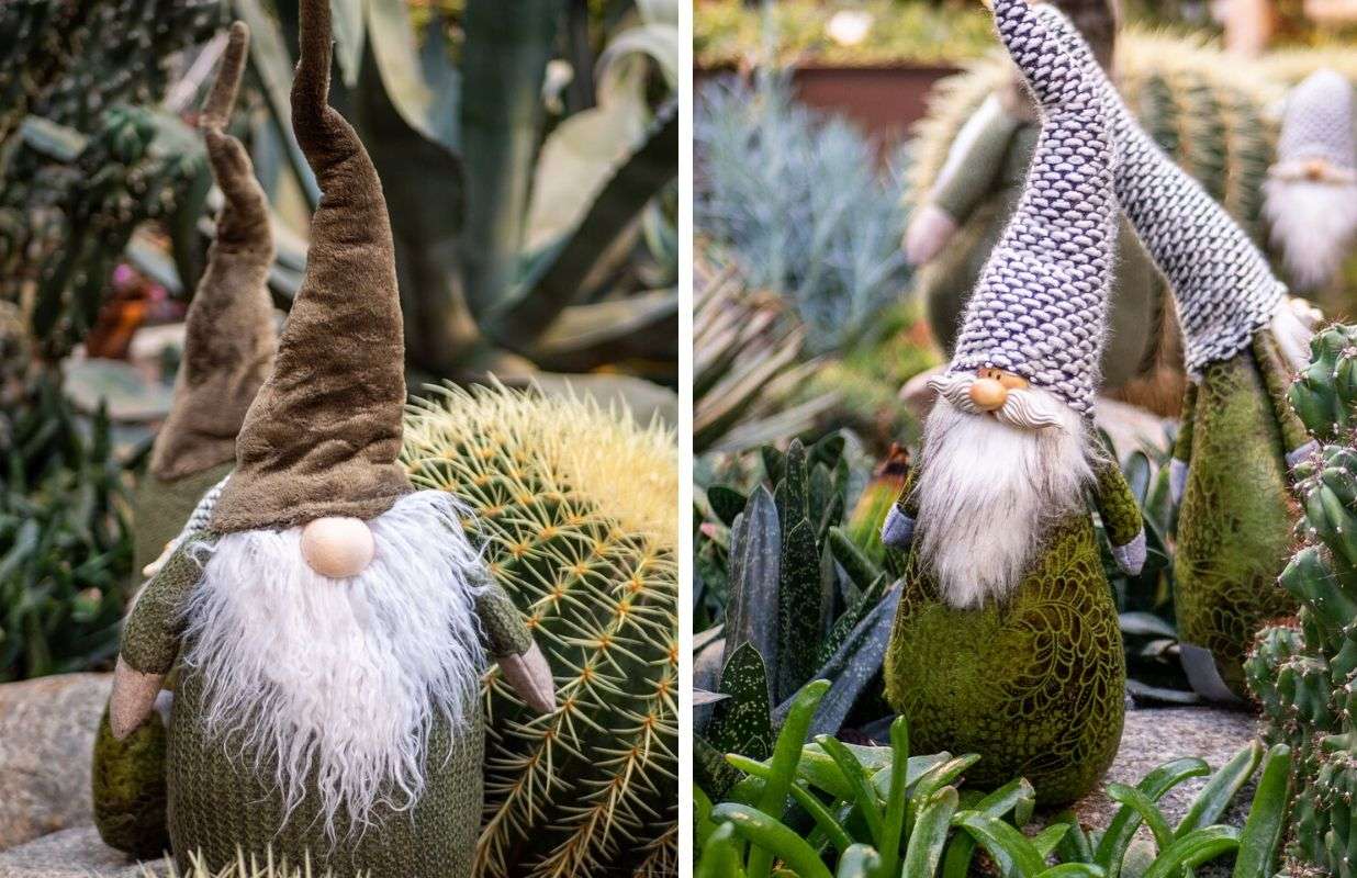 Joulun parhaat hahmot olivat piiloutuneet vaaleanpunaisten joulutähtien lomaan Läntisen siiven nurkkaan. Sieltä ne kurkistivat, ketut, oravat ja linnut! Osa tontuista oli visusti piilossa, osa oli uskaltanut ihan näkyville, kaktusten piikeistäkin välittämättä!