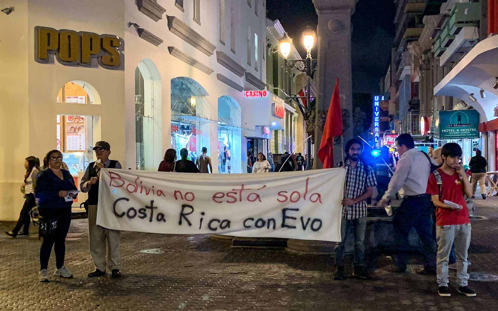 Kiertelimme myös hiukan lähikortteleita ja näimme niin hienosti valaistuja julkisia rakennuksia kuin aivan tavallisia kauppakatuja, jotka olisivat voineet yhtä hyvin olla vaikka jossain espanjalaisessa kaupungissa. Aluksi hiukan meitä arveluttanut tuntematon kaupunki, jossa meneillään oli pieniä mielenosoituksiakin, pimeänä iltana, osoittautui ainakin keskustan kaduilla ihan turvalliseksi. Supermarketkin löytyi ja sen valikoimat osoittautuivat hyvinkin länsimaisiksi.