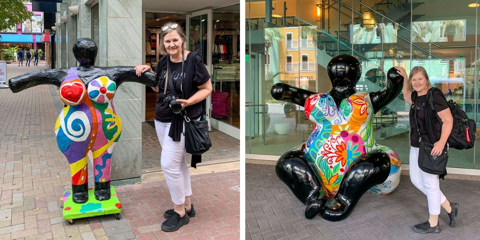 Willemstadissa on myös monessa paikassa reheviä värikkäitä naishahmoja. Ne ovat taiteilija Serena Israelin käsialaa ja niihin voi tutustua Chichi Shopissa Pundan kujilla tai tehtaalla saaren itäosassa. Ensimmäisen näimme jo hotellimme, Renaissance-hotellin, edustalla.