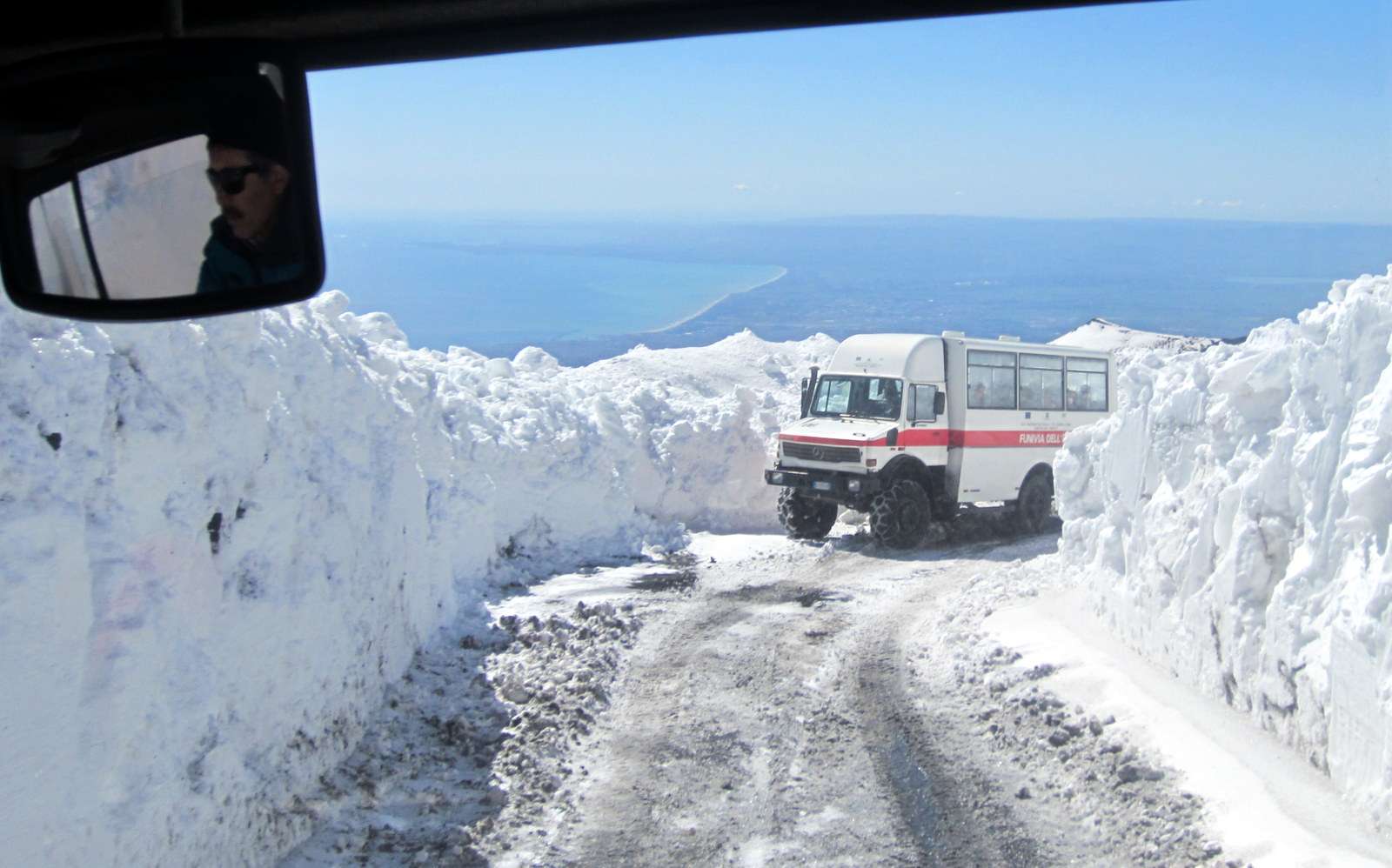 Keväällä 2013 kiersimme Sisilian saarta vuokra-autolla, kohokohtana tietysti käynti Etnalla. Vietimme myös muutaman päivän Palermossa. Kevät on kyllä kaunista aikaa Välimerellä – Etnalla tosin oli edelleen metreittäin lunta!