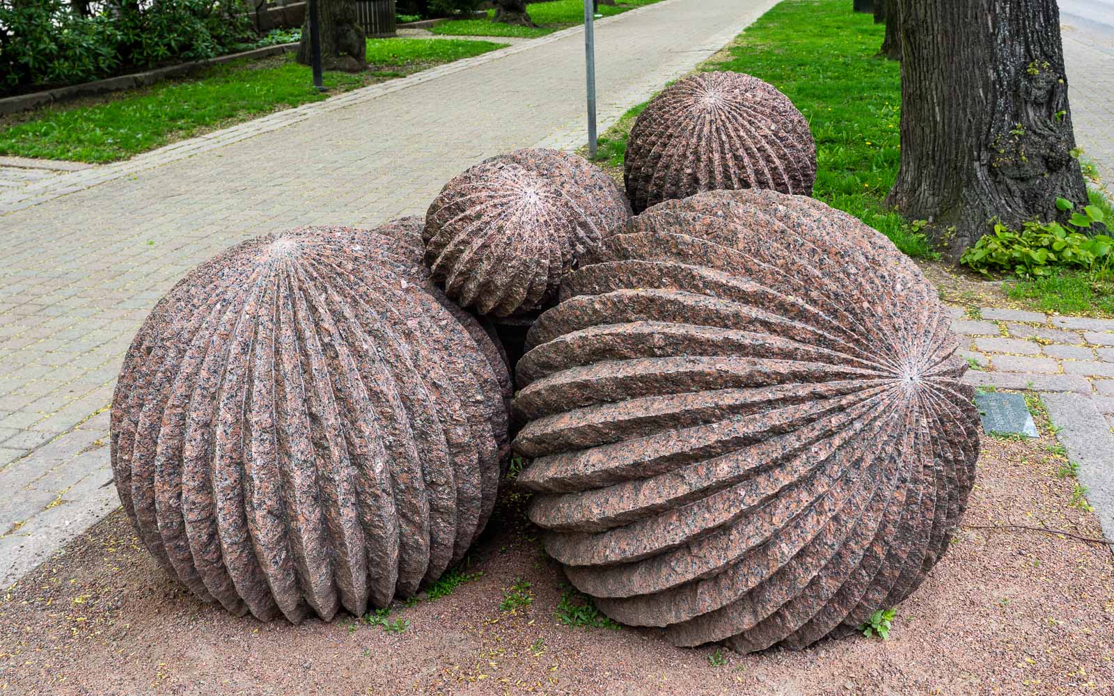 Kokonaisuudessaan parin kilometrin mittaista Veistospromenadia kävelimme vain lyhyen matkaa hotellimme edessä, mutta koska se kiertää oikeastaan koko kaupungin, niin näimme siihen “kuuluvia” töitä muuallakin, esimerkiksi jo mainituissa Sapokan Vesipuistossa ja Sibeliuksenpuistossa.