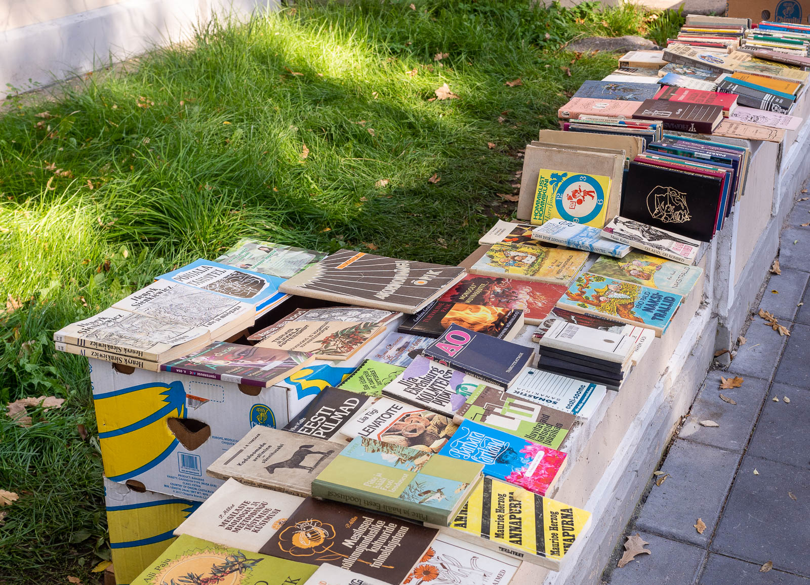 Lauantai-aamuna käveltyämme riittävästi syysmarkkinoiden kojuja katsellen olimme ajatelleet käydä lyhyellä risteilyllä kaupunkia halkovalla Emajoella, mutta syksyn viimeisen risteilyviikonlopun lähtöajat oli karsittu jo minimiin ja kaavailemamme lähtöä ei ollutkaan. Hetken pohdimme jokirannassa seuraavaa siirtoamme ja päätimme sitten kiivetä kilometrin matkan Stalinin vainojen muistomerkille. Muistomerkki kiinnosti minua kuvan perusteella siksi, että se oli toteutettu Viron kansalliskukan, ruiskukan muotoon. Pieni muistomerkki löytyikin ja kuten melkein aina, reitin varrelta yhtä jos toista muutakin kivaa, kuten vaikka kadulle levittäytyneet kirjamarkkinat ja tyylikkäitä graffiteja.