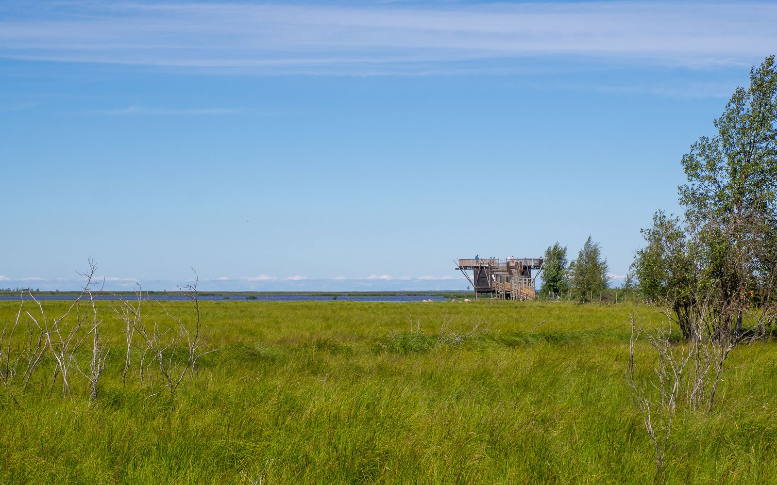 Jo sitä ennen poikkesimme kuitenkin Liminganlahden luontokeskuksessa ja kävelimme luontokeskusta lähinnä olevalle lintutornille. Tarkoituksenamme oli myös syödä lounas luontokeskuksen kahvilassa, mutta ainakin juuri sinä päivänä heinäkuussa kahvilan tarjonta oli jokseenkin olematonta suolaisten vaihtoehtojen osalta.