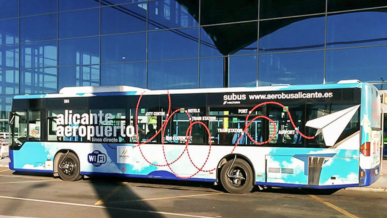 Alicanten lentokentältä menee bussi keskustaan 20 minuutin välein ja kyseinen bussi kiertää vielä kaupunkia sillä lailla mukavasti, että useimpiin kohteisiin, myös meidän hotellillemme, löytyi alle 500 metrin päässä oleva pysäkki. Tullessamme maksoimme vielä bussista 2 x 3,85 euroa, mutta sittemmin tulimme netistä lukeneeksi, että senioreina olisimme selvinneet – ja paluumatkalla selvisimmekin – 2 x 0,95 eurolla!