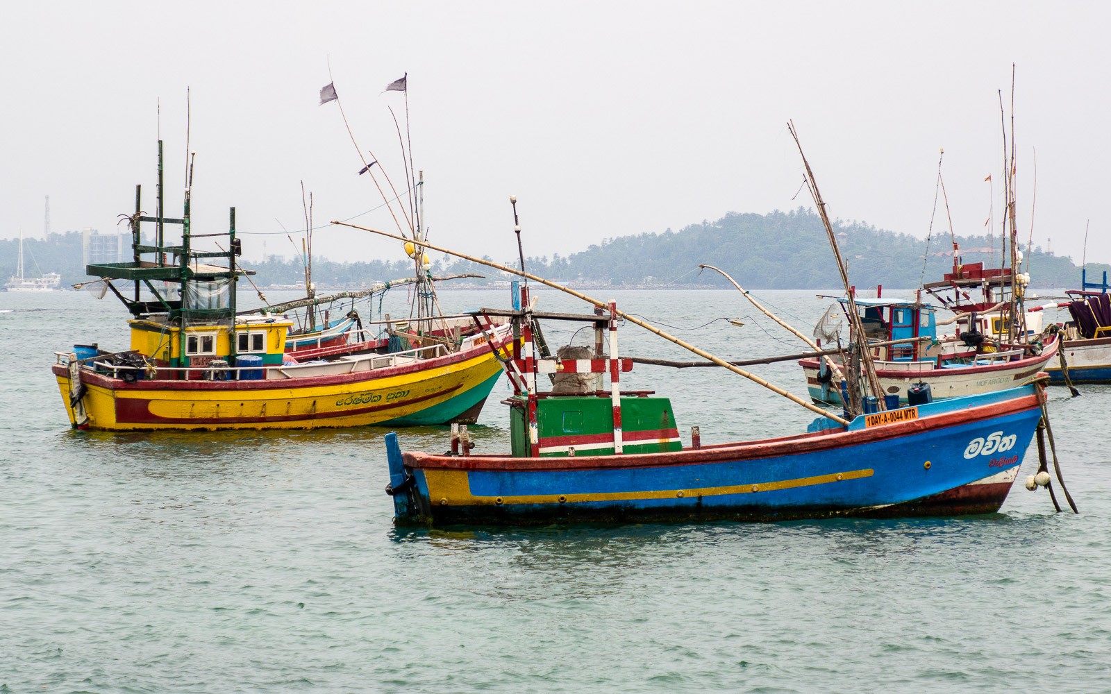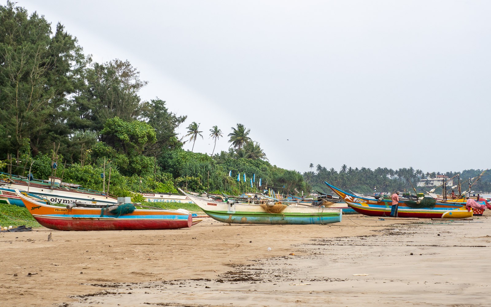 Enemmän veneitä näimme rannan itäreunalla sijaitsevassa pienessä satamassa lähellä Taprobanen pientä saarta. Matkakuvissa esiintyviä keppien varassa istuvia kalastajia emme sen sijaan nähneet, emme Weligamassa emmekä Mirissassa – Mirissassa sentään oli yksi tällainen keppi pystyssä. Ilmeisesti näiden kalastajien osalta tilanne on saman tapainen kuin Myanmarin näyttävästä heittoverkoilla kalastajien kanssa. Kalastusta harrastetaan lähinnä tippien takia, ei kalojen, ja niinä hetkinä kun liikuimme rannoilla ei turisteja ollut riittävästi näytännön järjestämiseksi. Gallessa sentään “näimme” niitä yhdessä taulussa!
