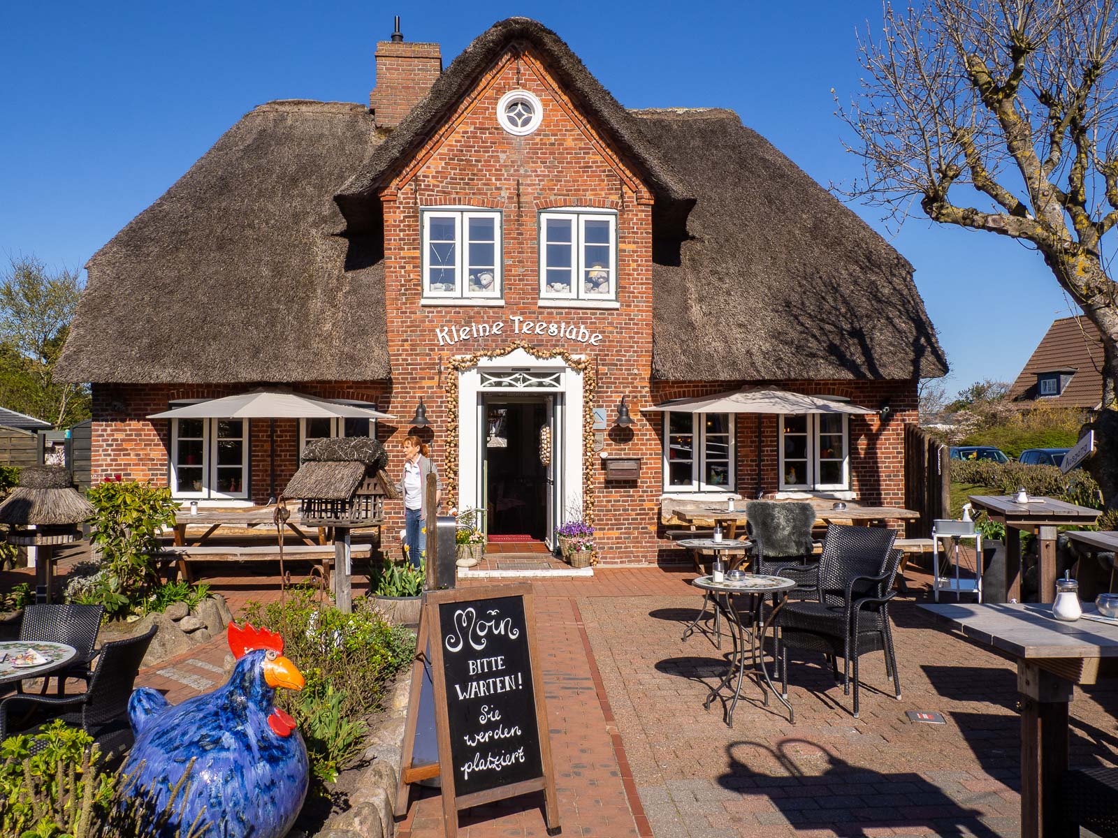 Ensimmäinen pitempi pysähdyksemme oli Keitumissa, jossa pääsimme kiertelemään pienen keskustan katuja olkikattoisia rakennuksia katsellen. Matkailijoiden ja kesäasukkaiden rahoja mielellään keräävät taide- ja käsityöputiikitkin kiirehtivät avaamaan terassejaan huomatessaan laivan bussien saapuvan paikkakunnalle.