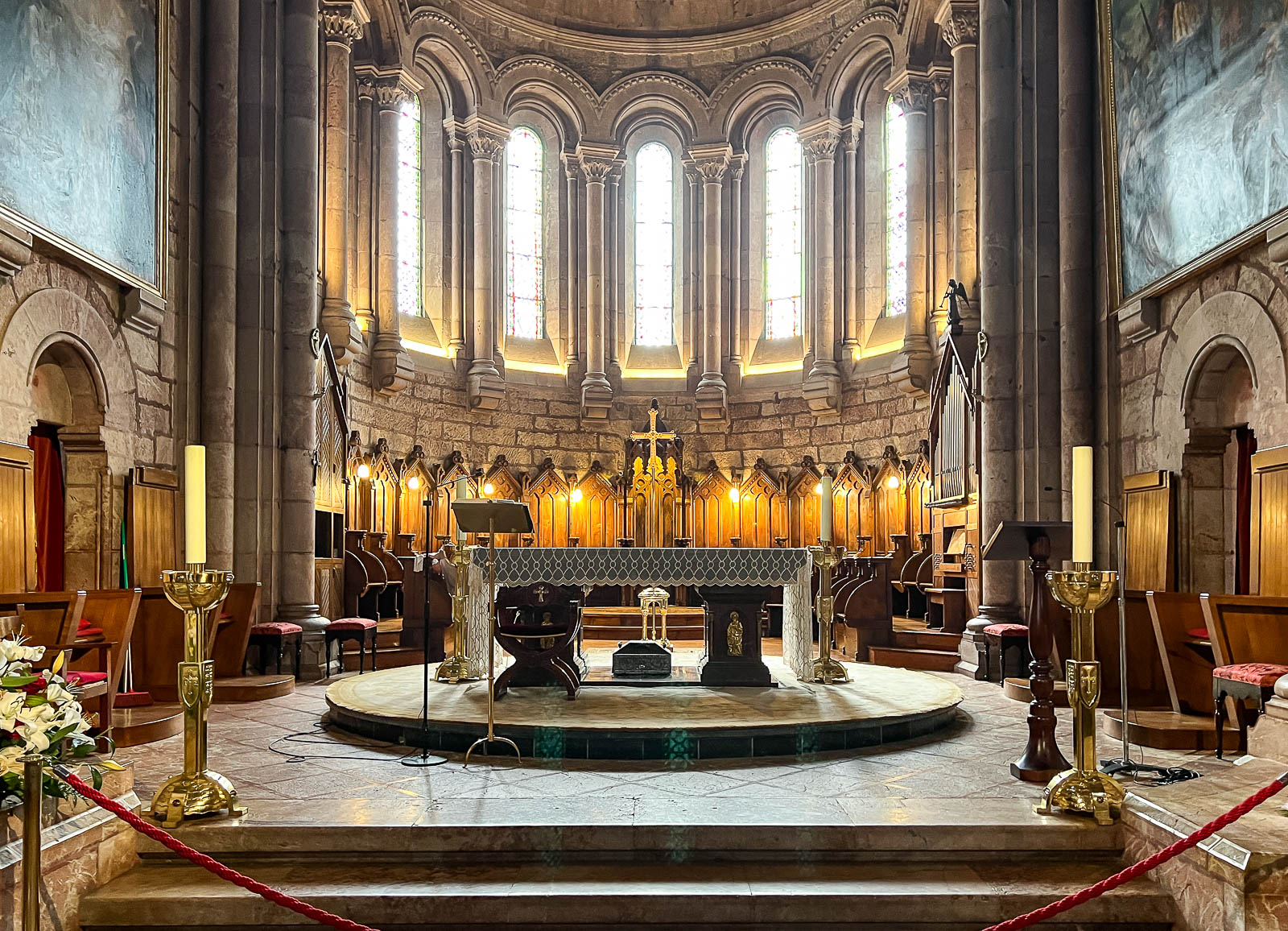 Basilika on rakennettu vaaleanpunaisesta kalkkikivestä ja poikkeaa sekin juuri sen verran tyypillisistä kirkoista, että sekin ansaitsee ehdottomasti hetken tai parikin.
