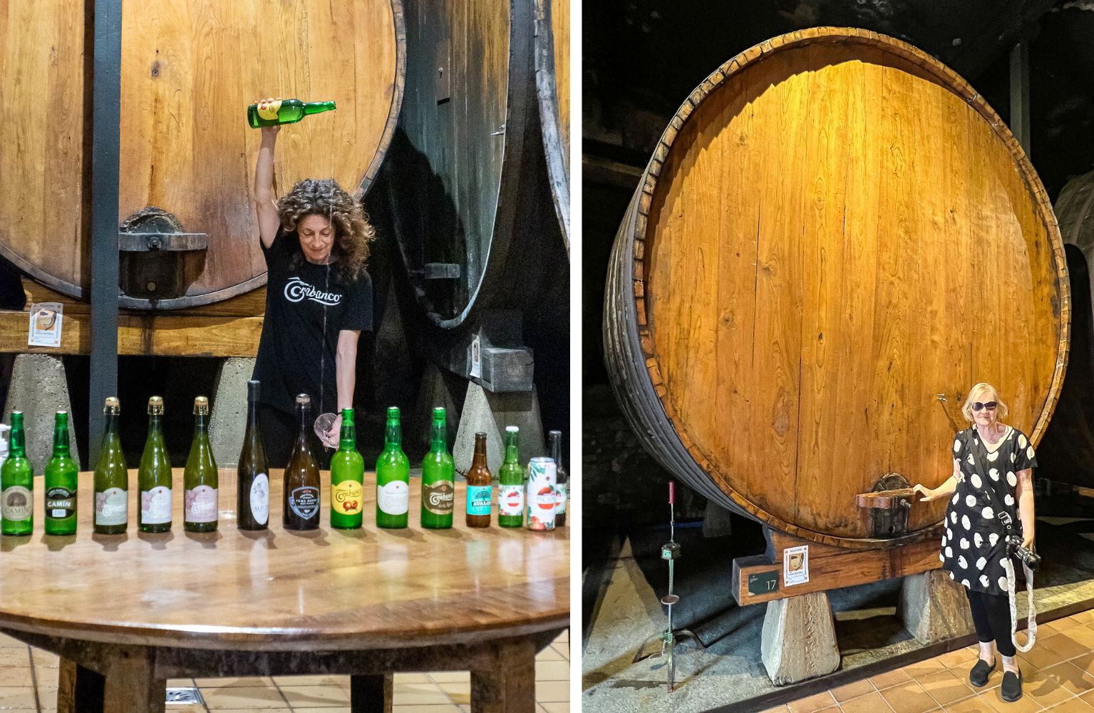 Asturialainen omenasiideri on aika erilainen juoma kuin vaikka Suomessa alumiinitölkeissä myytävä perussiideri. Täällä siideri myydään yleensä isoissa lasipulloissa, joihin tutustuimme jo Gijónin sataman “siideripuun” kohdalla. Oppaamme selitti meille innostuneesti miten kaikki siiderintuottajat käyttävät näitä samanlaisia pulloja, kukin tietysti omalla omalla etiketillään, mutta koska pullot ovat samanlaisia niiden keräys ja kierrätys on helposti järjestettävissä ! Suomalaisina meiltä kestää hetken ymmärtää tätä innostusta, luonnollisestihan kaikki pullot kierrätetään!