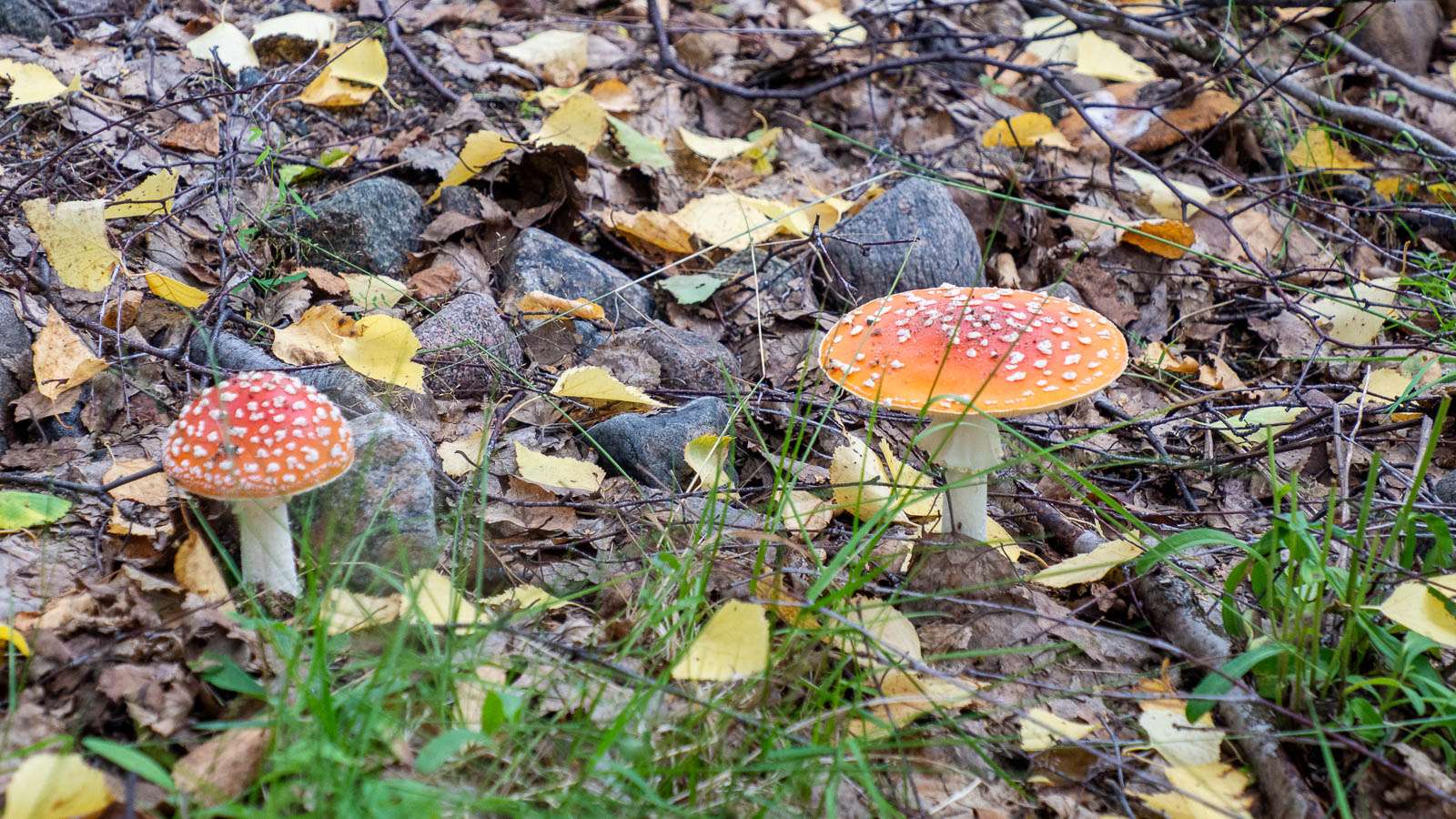 Iso-Huiturin rantaniitty on melko tiheää kasvustoa, mutta kyllä näiden puiden läpi pääsee puikkelehtimaan. Rannalla on myös vanha kalastajien aikoinaan käyttämä rakennus, joka on sittemmin hylätty. Muutamaa punaista kärpässientä ei voi olla huomaamatta muuten vihreässä maisemassa. Mutta meillä on kohde, Piispankivi, saaren pohjoispäässä.