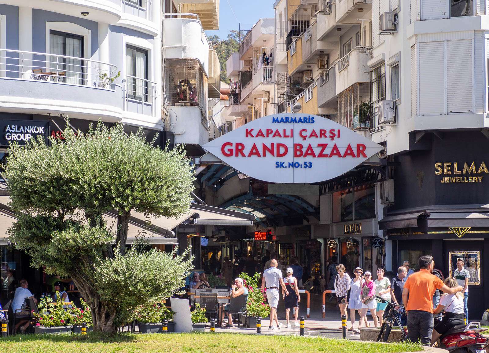 Kappas Marmaris onkin ihan siinä ihan vieressä, aika kätevä tapa yhdistää Turkki Kreikan matkaan. Täytyykin pitää mielessä! Turkkiin niin kuin Kreikkaankin on aina ikävä. Ranta näyttää kivalta palmuineen ja enpäs tiennytkään että tuolta löytyy Turkin toiseksi isoin basaari.