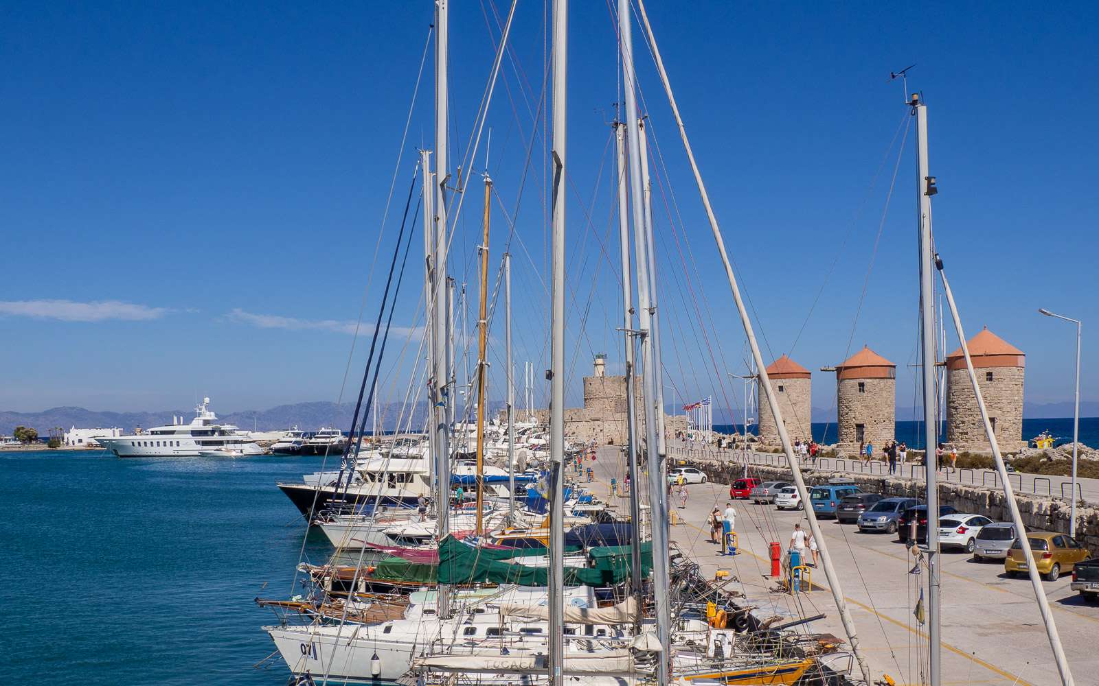 Pyhän Nikolauksen linnoitus on sekin 1400-luvulta. Mandraki oli aikoinaan sotilassatama. Majakka linnoituksen huipulla on 1600-luvulta.