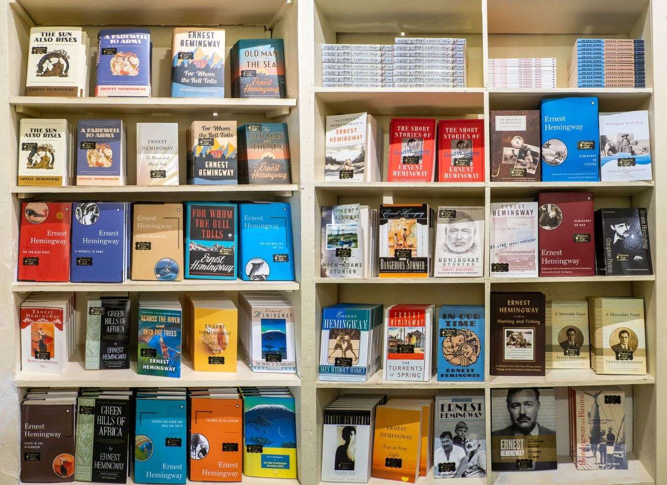 Työhuoneen alakerrassa on vielä matkamuistomyymälä, jossa on myytävänä paitsi erilaista Key Westiin sopivaa turistikamaa, myös useimpia Hemingwayn kirjoja erilaisina laitoksina. Ihan niin vaikuttava tuo ei kuitenkaan mielestäni ollut kuin Karen Blixenin asunto Kööpenhaminan lähellä, jossa yhdessä museon huoneessa oli esillä kirjailijan koko tuotanto, kaikkien julkaistujen kirjojen kaikilla eri kielillä julkaistut laitokset. Etsin hetken aikaa katseellani kirjaa To Have and Have Not (suomennettuna Kirjava satama), jonka oppaamme oli esitellyt kysymällä, että oletteko lukeneet sen ja vastaamalla sitten hetimmiten omaan kysymykseensä: “Ette tietenkään, sillä sitä se kouluissa lueteta”. Kirjaa ei lueteta, koska se kertoo niin surullisia tarinoita ihmiskohtaloista saman jälkeisessä ajassa, että nuorten ei haluta lukevan niitä. Olisin voinut ostaa kirjan, jos se olisi sattunut silmiini. Finca Vincasta, Kuubasta, ostin matkamuistoksi kirjan The Old Man and the Sea – kävimmehän siellä satamassakin, joka on kyseisen kirjan maisemaa.