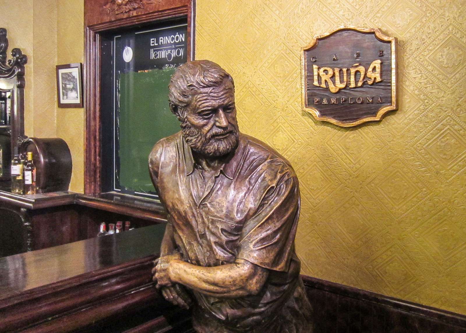 Espanjan Pamplonassa Hemingwayllä on niin hotelli (La Perla) kuin baari (Cafe Iruna), jotka lämmöllä muistelevat kirjailijan oleskelua Pamplonassa.