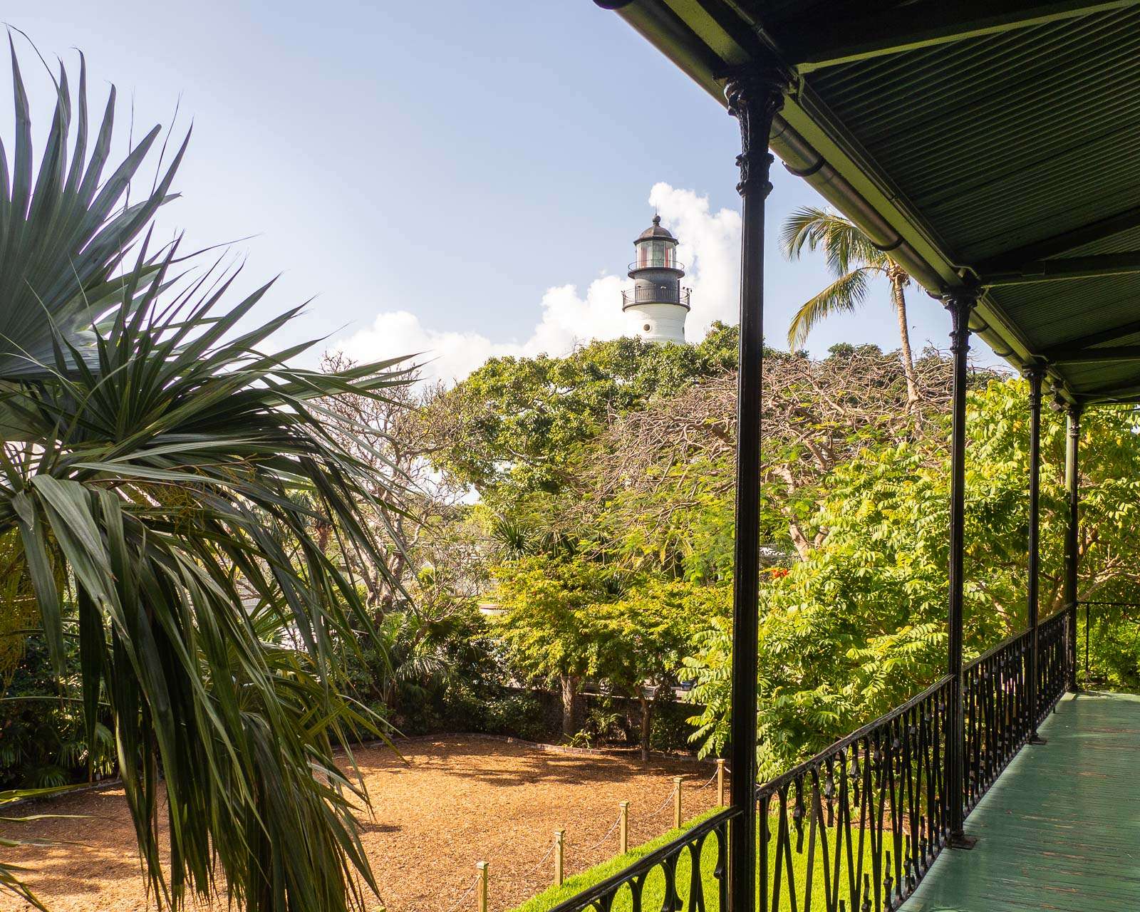 Taloa kiertää terassi, joka Floridan ilmastossa on ollut käytössä olohuoneen tapaan – oppaamme kertoo miten Ernest Hemingway tapasi iltapäivällä terassilla käydä läpi aamupäivällä kirjoittamaansa tekstiä. Terassilta on myös näkymä Key Westin majakalle. Talo ja etenkin läheinen majakka olivat aikoinaan rannalla, mutta sittemmin armeija Key Westin tukikohtaansa rakentaessaan täytti rantaa siten, että majakkakin on nykyisin kaukana rannasta. Vilvoittava merituuli osuu kuulemma kuitenkin edelleen terassille iltapäivisin.