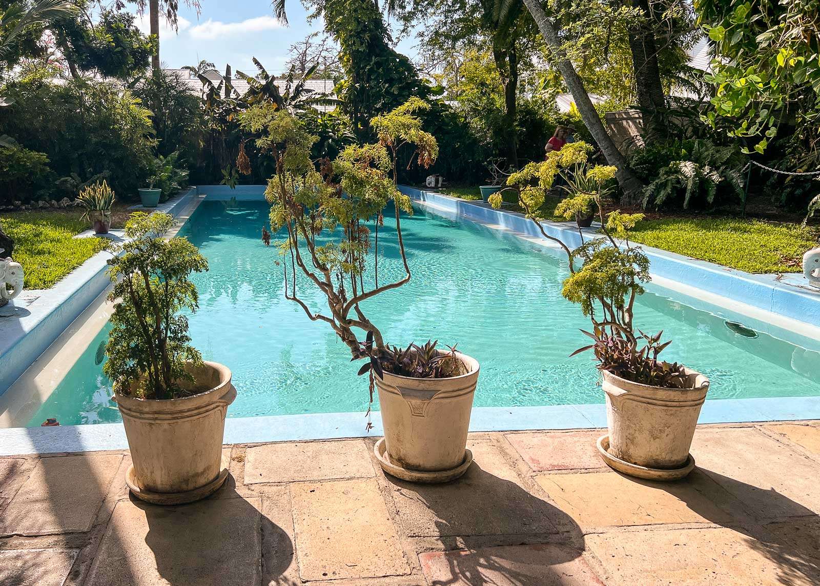 Uima-allas ja siihen liittyvät tarinat ovat sen sijaan on säilyneet. Pauline rakennutti uima-altaan Ernestin jo seurustellessa Marthan kanssa pihalla aikaisemmin olleen nyrkkeilykehän tilalle. Jos tilanne on mikä on, niin hän tekee mitä haluaa Ernestin toiveista välittämättä. Uima-allas kaivettiin käsipelillä, sillä kunta ei antanut lupaa järeämpään rakennustapaan. Key Westissä ei myöskään ollut juoksevaa vettä ennen vuotta 1944, joten alunperin vesi altaaseen saatiin suolavesipohjasta altaan alla. Tätä varten altaasta oli porattu sinne asti ulottuva reikä, josta vesi pumpattiin altaaseen.