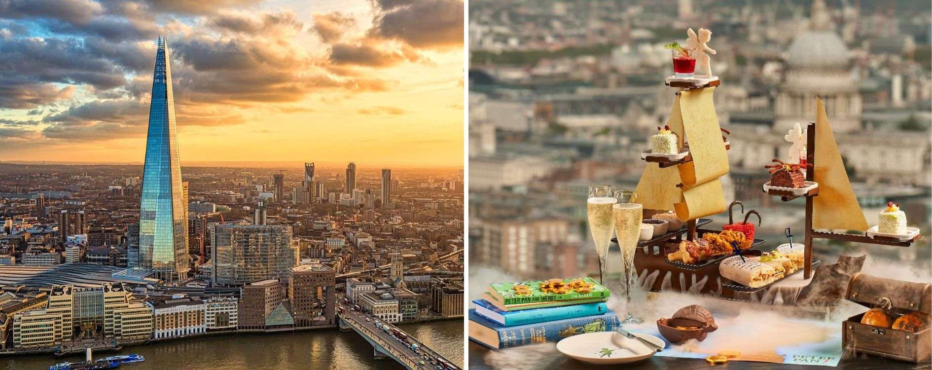 The Shard, rakennuksena ja iltapäiväteenä – kuvat ravintolan sivuilta(Jutun otsikkokuva: Pixabay)