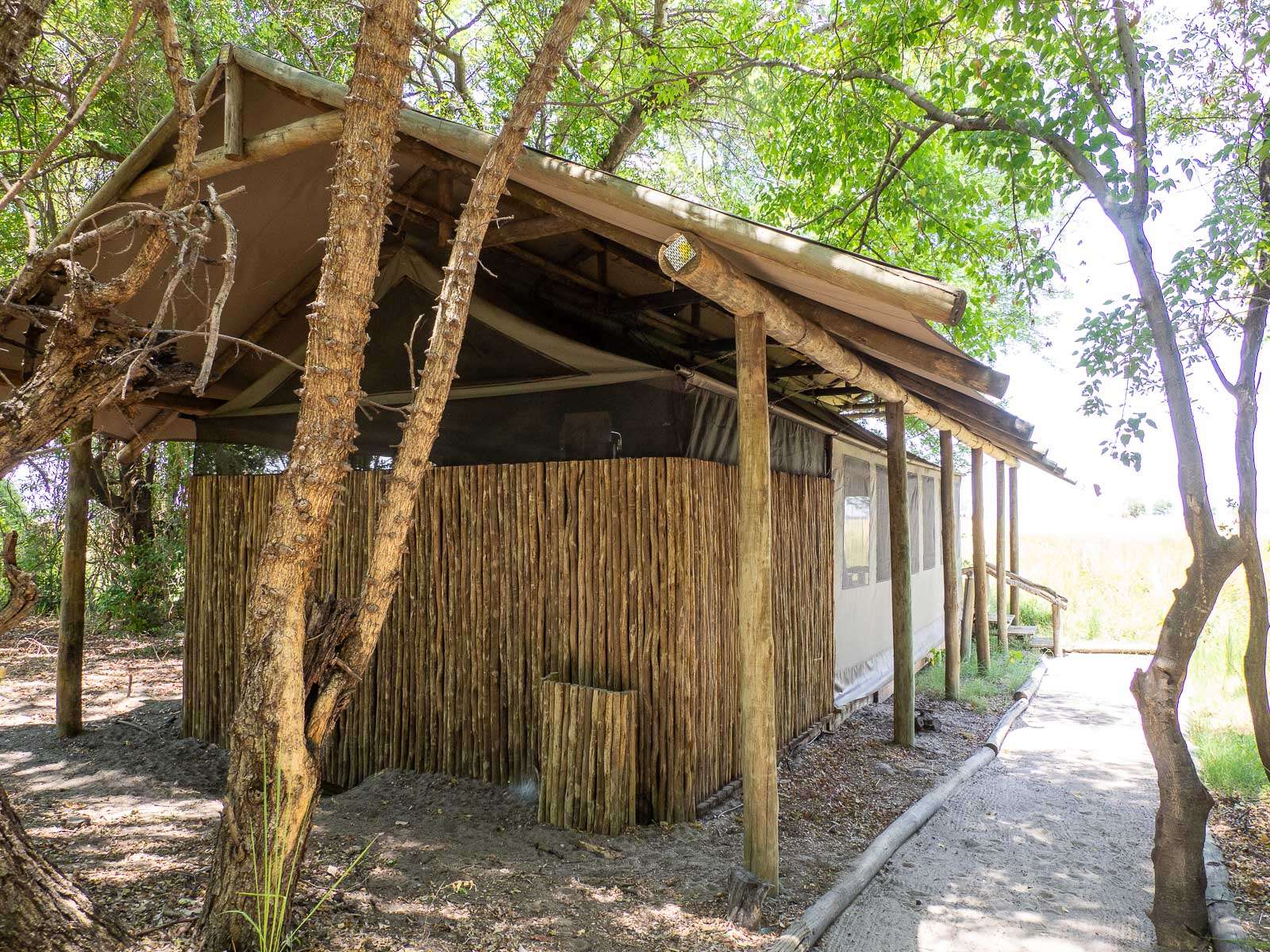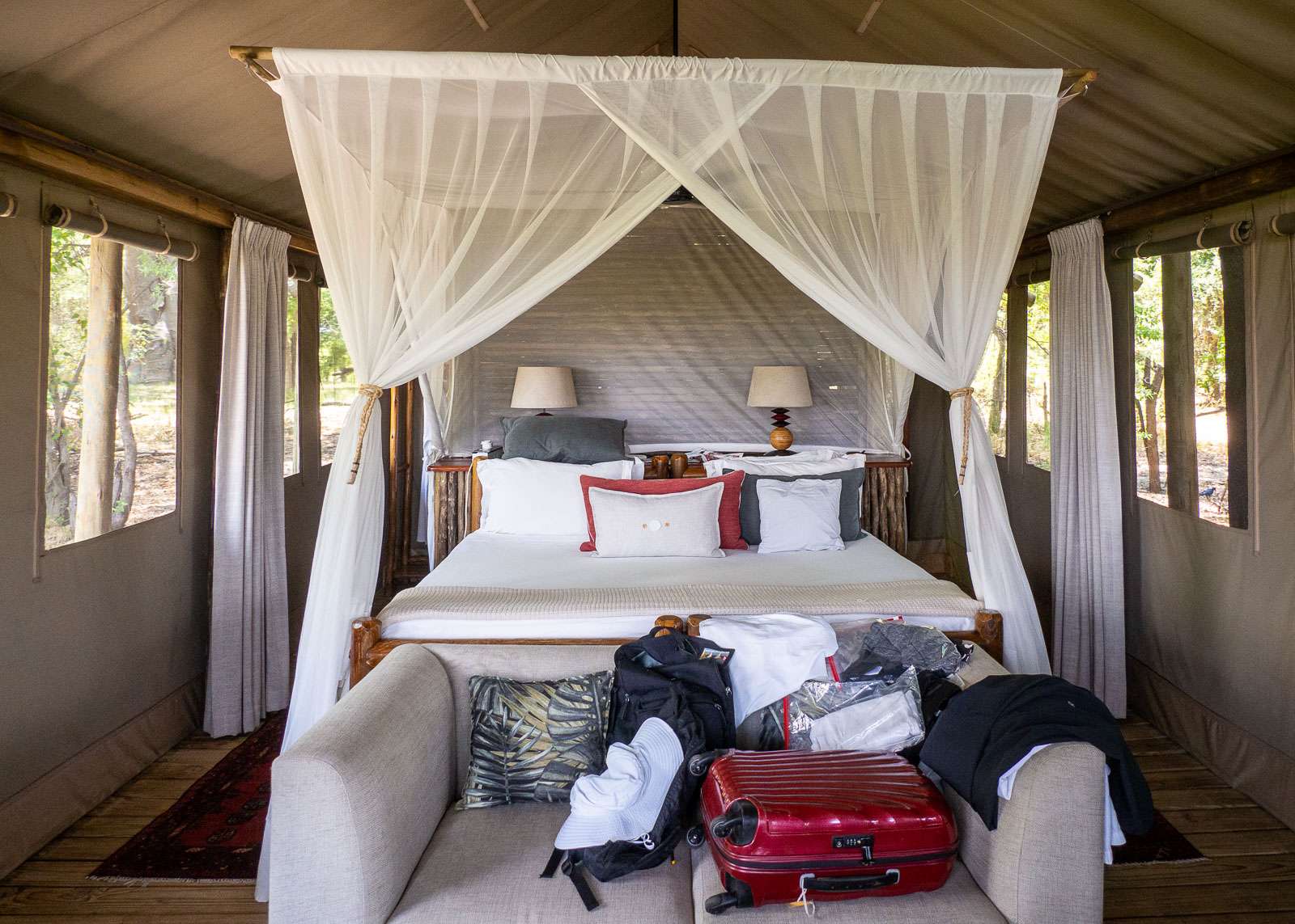 Okavangon suisto ei ole safarikohteena edullisin. Saavutettavuus monilta osin vain pienkoneilla yhdistettynä luksustason majoitustelttoihin pitää hintatason korkealla. Ehkä tarkoituksella, ehkä Botswana ei halua riskeerata alueen ekosysteemiä kovin suurilla vierailijamäärillä. Me asuimme kahdessa erilaisessa leirissä, joista Camp Xakanaxa oli ensimmäinen. Edellisestä safaristamme Afrikassa oli jo muutamia vuosia ja yllätyin ainakin Okavangon alueen telttojen tasosta. Kaikista mahdollisista mukavuuksista vain ilmastointi ja jääkaapit taisivat puuttua. Sähköä oli saatavilla ympäri vuorokauden eikä vain muutamia tunteja alkuillasta kuten joskus aikoinaan Serengetissä. Ilmastoinnin virkaa toimittivat hyvin toimivat kattotuulettimet. Kylpyhuoneet olivat mahtavan kokoisia ja majoituksen hintaan kuului myös pyykkien pesu.