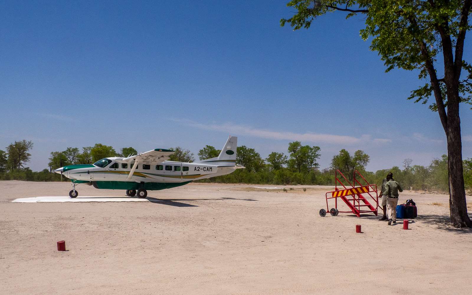 Useimmat Okavangon suiston lukuisista safarilodgeista ovat saavutettavissa vain lentokoneella. Moremin riistansuojelualueelle pääsee perille autollakin, jos välttämättä haluaa – aikaa matkaan Maun kaupungista tosin voi mennä teiden kunnosta riippuen jopa 5 tuntia. Me valitsimme lennon: matka pienkoneella kestää parilla pompullakin alle tunnin. Pomput tulevat siitä, että samalla suunnalla olevat leirit saatetaan ketjuttaa siten, että sama pieni kone (tyypillisesti Cessna 208) jättää ja poimii ihmisiä useammasta samalla suunnalla olevasta leiristä. Pienissä leireissä on kerrallaan ehkä tyypillisesti parikymmentä ihmistä ja kun kaikki ovat liikkeellä omilla aikatauluillaan kuhunkin leiriin ehkä tulee päivittäin muutamia ihmisiä ja vastaavasti lähtee muutamia. Pienkoneet tekevät matkaa Okavangon suiston yllä edestakaisin aamusta iltaan.