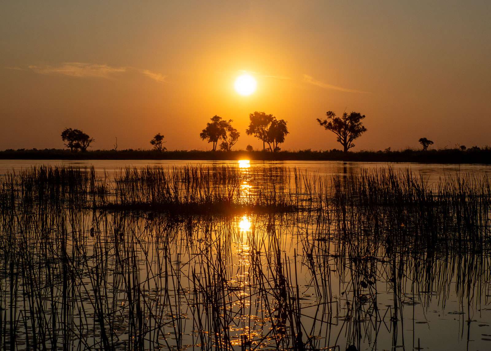 Marraskuiset iltapäivät Okavangon suistossa olivat helteisiä, lähes tuskaisia – lämpötila nousi useimpina päivinä 40 asteeseen. Päivän aktiviteetit ajoittuivat aamutunneille, aamusafarit tehtiin aamiaisen (6:00 – 6:30) ja lounaan (11:00 alkaen) välillä. Lounaan jälkeen vietettiin siestaa, joko auringossa, ehkä pienissä (kuumissa!) uima-altaissa välillä virkistäytyen, tai varjoisissa huoneissa kattotuulettimen yrittäessä ainakin pitää ilmaa liikkeellä. Siesta päättyi iltapäiväteehen (15:30 – 16:00), jonka jälkeen lähdettiin iltasafarille, josta palattiin sen verran aikaisin ennen illallista (20:00) alkaen, että ehti käymään suihkussa. Joinakin päivinä kävimme kyllä suihkussa siestankin aikaan, 40 asteen lämpötila vaati … jotain …