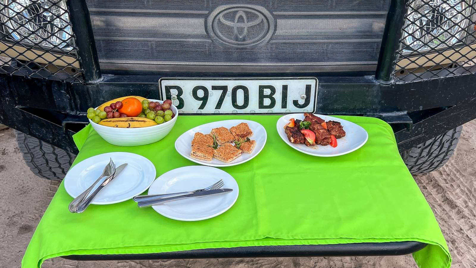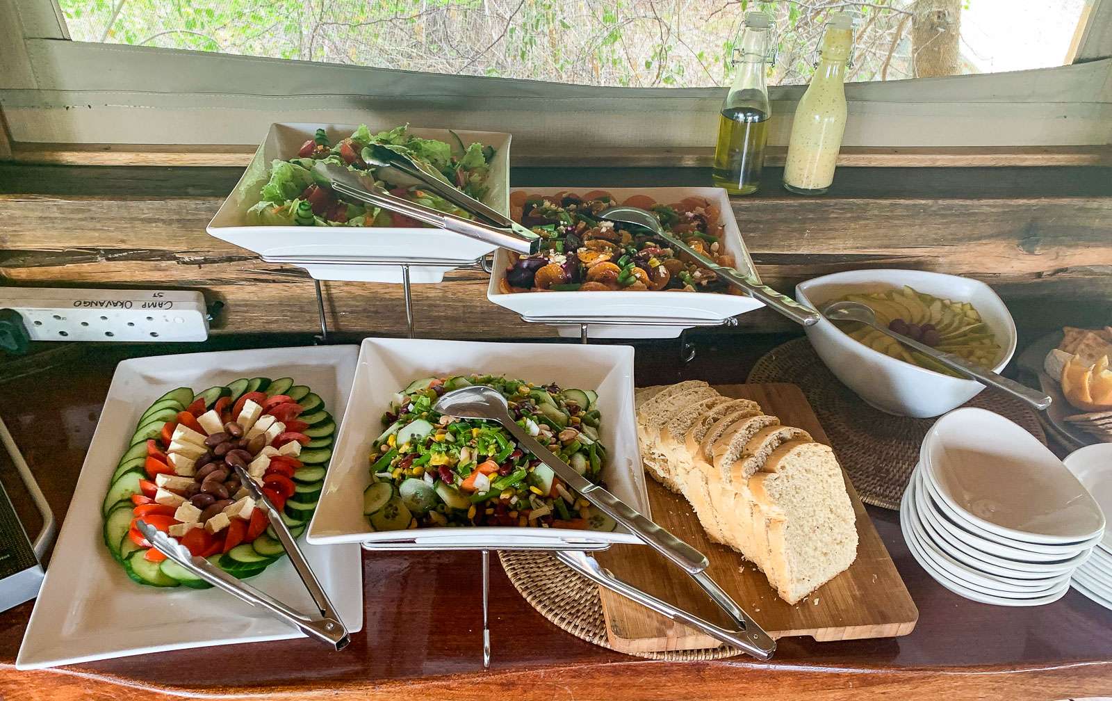 Täysihoito, runsas aamiainen, buffetlounas, ruokaisa iltapäivätee ja kolmen ruokalajin illallinen kuului sekin majoituksen hintaan – eikä asia tietysti toisin olisi voinut ollakaan, sillä kukin alueen leireistä on oma kokonaisuutensa ja mitään vaihtoehtoja oman leirin ravintolalle ei ole. Myös kaikki juomat kuuluivat hintaan ja ruoka-aikojen välillä täydennystä saattoi itse hakea isoista jääkaapeista – alkoholijuomatt mukaan lukien, jos niistä olisi helteestä huolimatta sattunut pitämään.