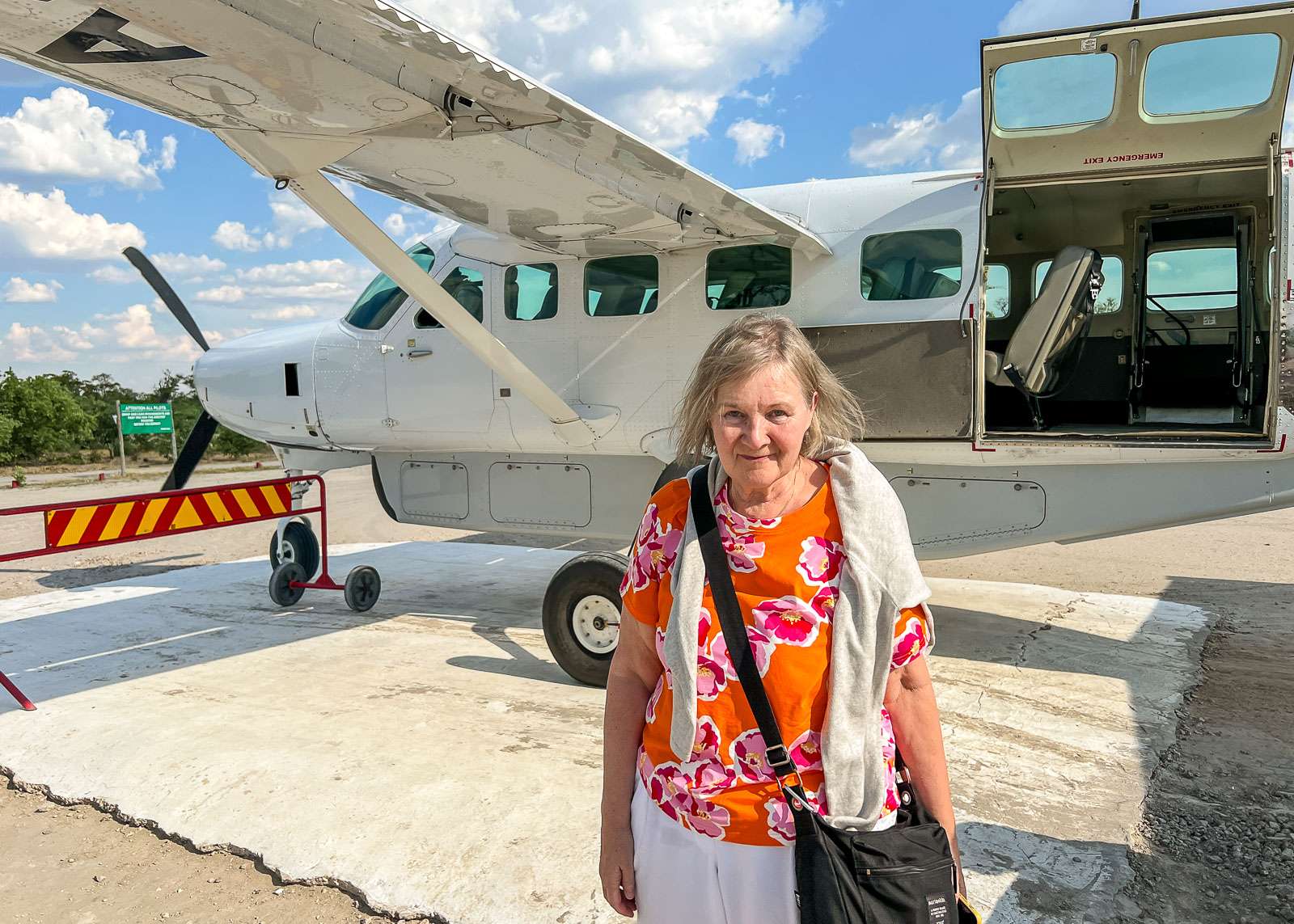 Varsinaisia lentokenttiä alueella ei ole kuin alueen keskuskaupungissa, Maunissa. Leirien yhteydessä on vain ruohottuneita kiitoratoja, joiden laidalla päivystää tyypillisesti yksi auto, joka ajelee tarvittaessa kiitoradalla hätistämässä eläimiä pois siltä. Viiden lyhyen lentovälin kokemuksellamme tätä oikeasti sattuu – yksi nousu keskeytyi kun radalla oli impaloita. Toisella yrityksellä päästiin sitten jo ilmaan. Kiitoradan reunalla koneen luo rullataan sen laskeuduttua käsin pienet portaat saapuvia ja lähteviä matkustajia varten. Koneiden moottoreita ei välilaskujen aikana sammuteta Turvatarkastuksia ei ole Maunin jälkeen, siellä se tosin olikin tarkka.