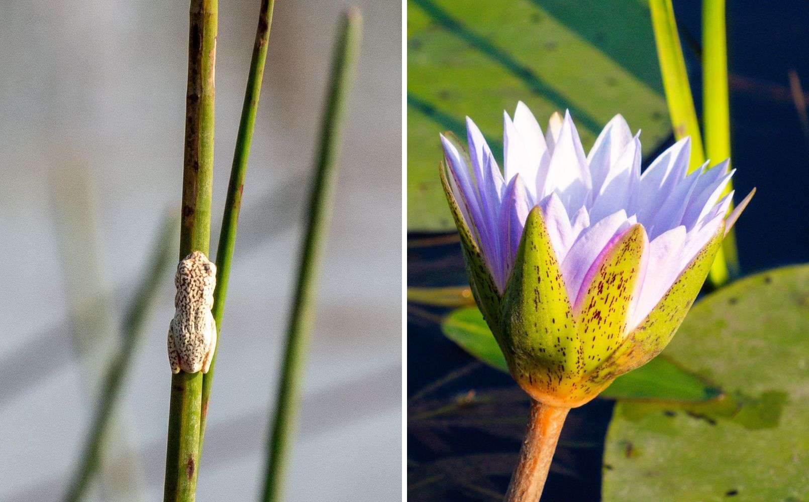 Mokoro-veneellä liikkumisen hienoja puolia oli luonnon tuleminen todella lähelle ja jokseenkin täydellinen hiljaisuus. Tavallaan huonona puolena oli sitten ettei isoja eläimiä näkynyt, mutta toisaalta emme olisikaan niitä halunneet pienellä veneellä kohdata. Pääasiassa näimme lintuja ja muutaman ihmeellisen pienen sammakon. Vesiuoman rannan ruovikossa olevia lintuja saattoi hyvällä tuurilla hiljaisella veneellä liikuttaessa päästä todella lähelle, mutta toisaalla sitten ylempänä, vaikka rannan puissa ja pensaissa istuskelevat linnut olivat matalasta veneestä käsin hankalassa kuvakulmassa.
