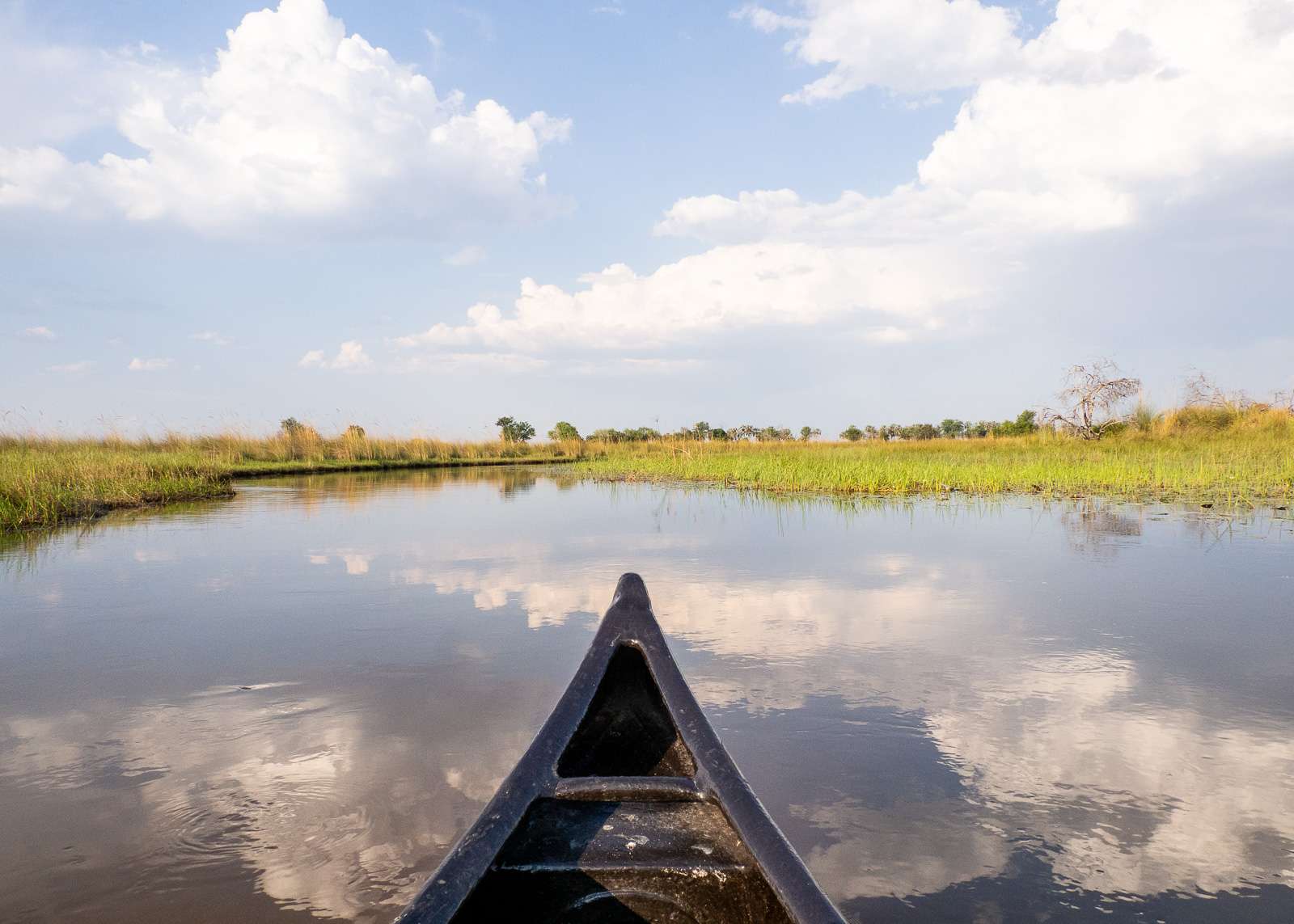 Camp Xakanaxassa safariajojen sijaan tarjolla oli vene- tai kävelyretkiä. Veneretkiä teimme kaksi, yhden perinteisillä mokoro-veneillä matalan veden alueella, toisen safariveneellä syvän veden alueella. Mokoro-veneillä ei sovi mennä syvän veden alueelle, sillä ne eivät pärjäisi virtahevoille tai krokotiileille. Teimme myös yhden kävelysafarin läheiselle saarelle – matka saarelle taittui toki ensin veneellä. Neljännen, lähtöaamuna tarjolla olleen toisen kävelysafarin, päätimme jo jättää väliin – jotenkin päivittäisestä siestasta huolimatta päivät Okavangon suiston telttaleireissä olivat tuntuneet lähes hengästyttävän kiireisiltä, joten halusimme ottaa itsellemme edes yhden hitaan aamun :-)