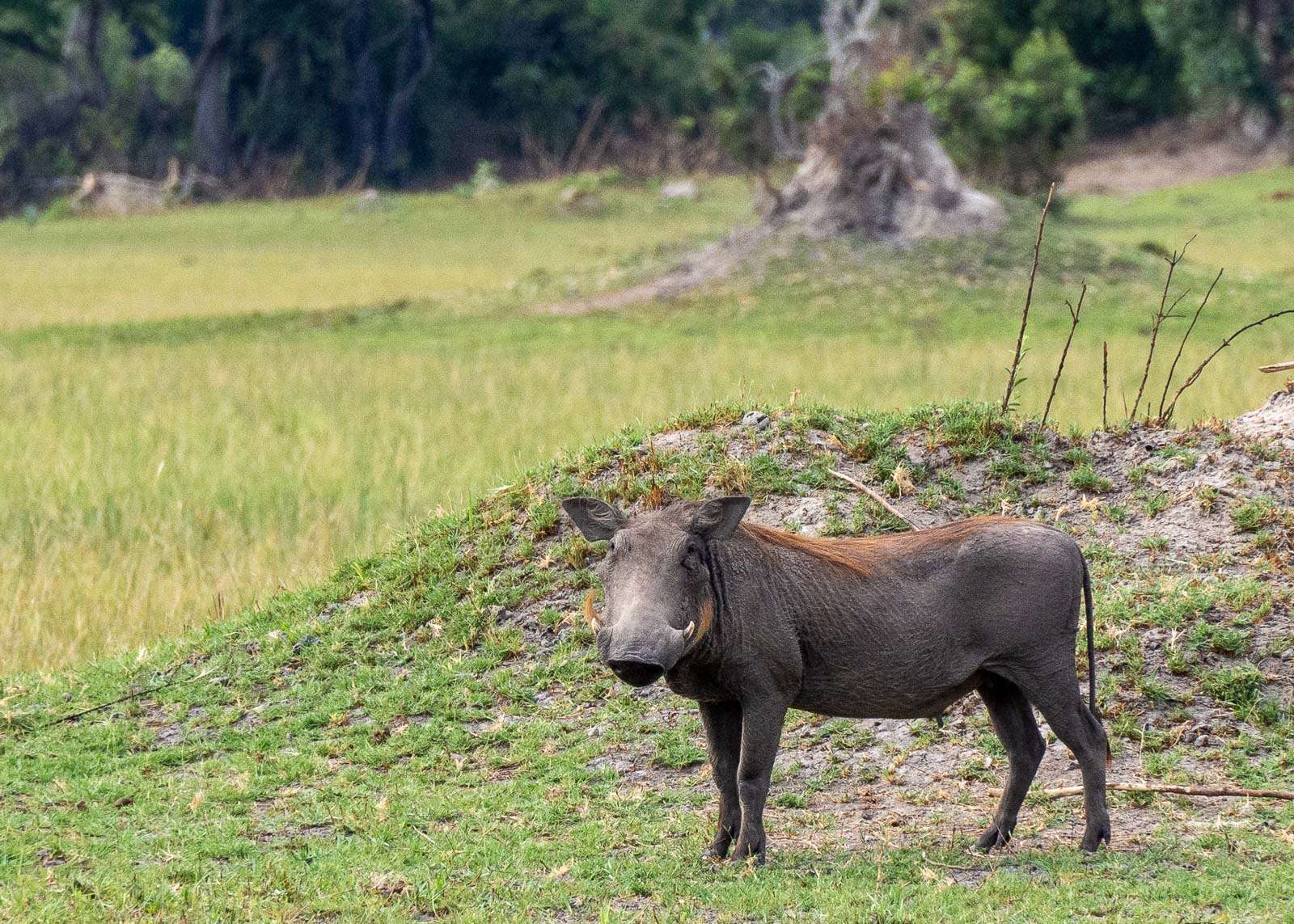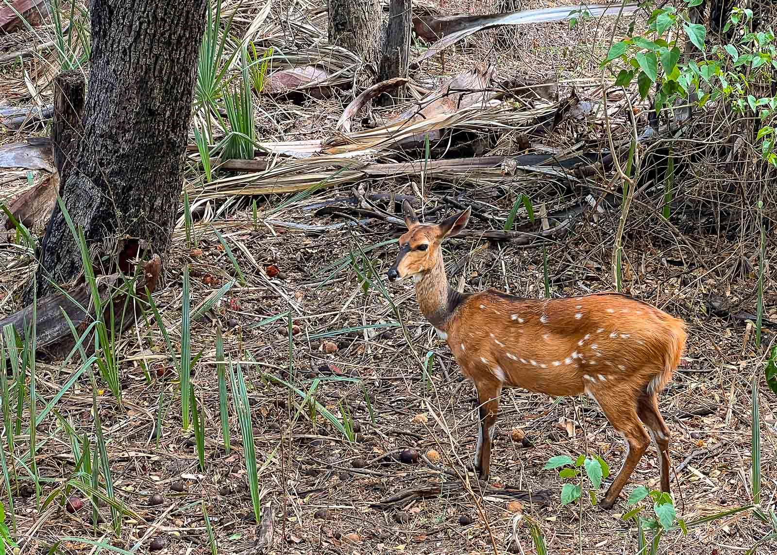 Kiväärin kanssa kulkeva safarioppaamme oli kyllä osaava sikäli, että tutkaili eri yhteyksissä tuulen suuntaa ja kierrätti meidät tilanteen mukaan tuulen alapuolelle. Kivääri oli mukana matkassa siltä varalta, että kohdalle osuisi kissapetoja, mutta ei sitä kuulemma yleensä ole tarvittu, edes varoituslaukauksiin. Samaan tapaan kuin Suomessa vieraillessamme korona-aikaan karhukojulla oppaamme arveli, että jos hän on näissä (Nurmeksen) metsissä liikkuessaan nähnyt jonain kesänä kerran karhun muuten kuin yöllä kojun suojasta, niin karhu on kyllä nähnyt hänet sata kertaa. Eli eläimet väistävät, kunhan se vaan on mahdollista.