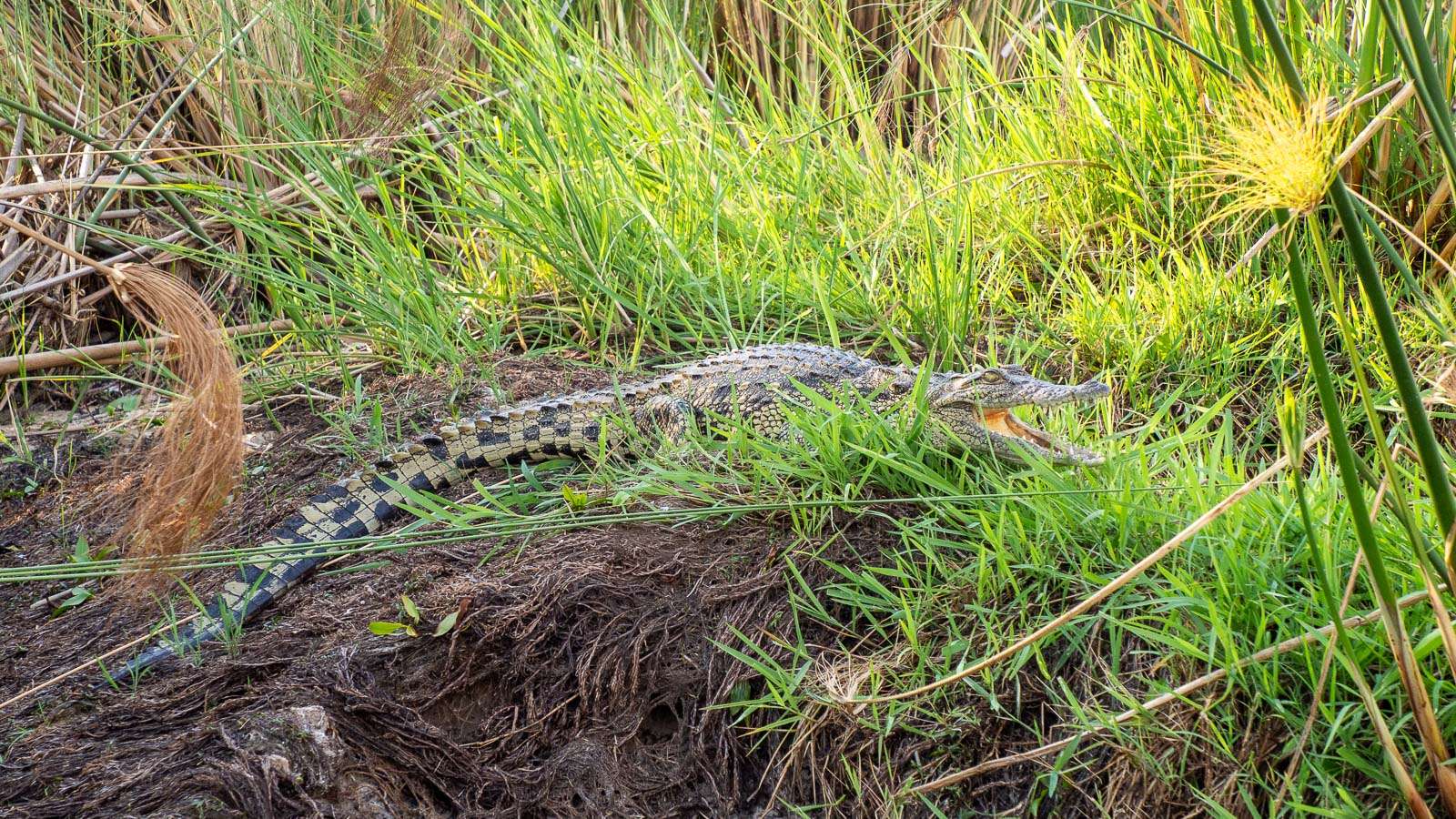 Toisen veneretken teimme isommalla safariveneellä ja syvempiä joenuomia pitkin mutkitellen. Siinä missä mokoro-veneillä liikkuessamme tarkoituksena oli olla kohtaamatta krokotiilejä, norsuja ja virtahepoja, niin nyt toivoimme niitä näkevämme, ja niinhän me näimme!