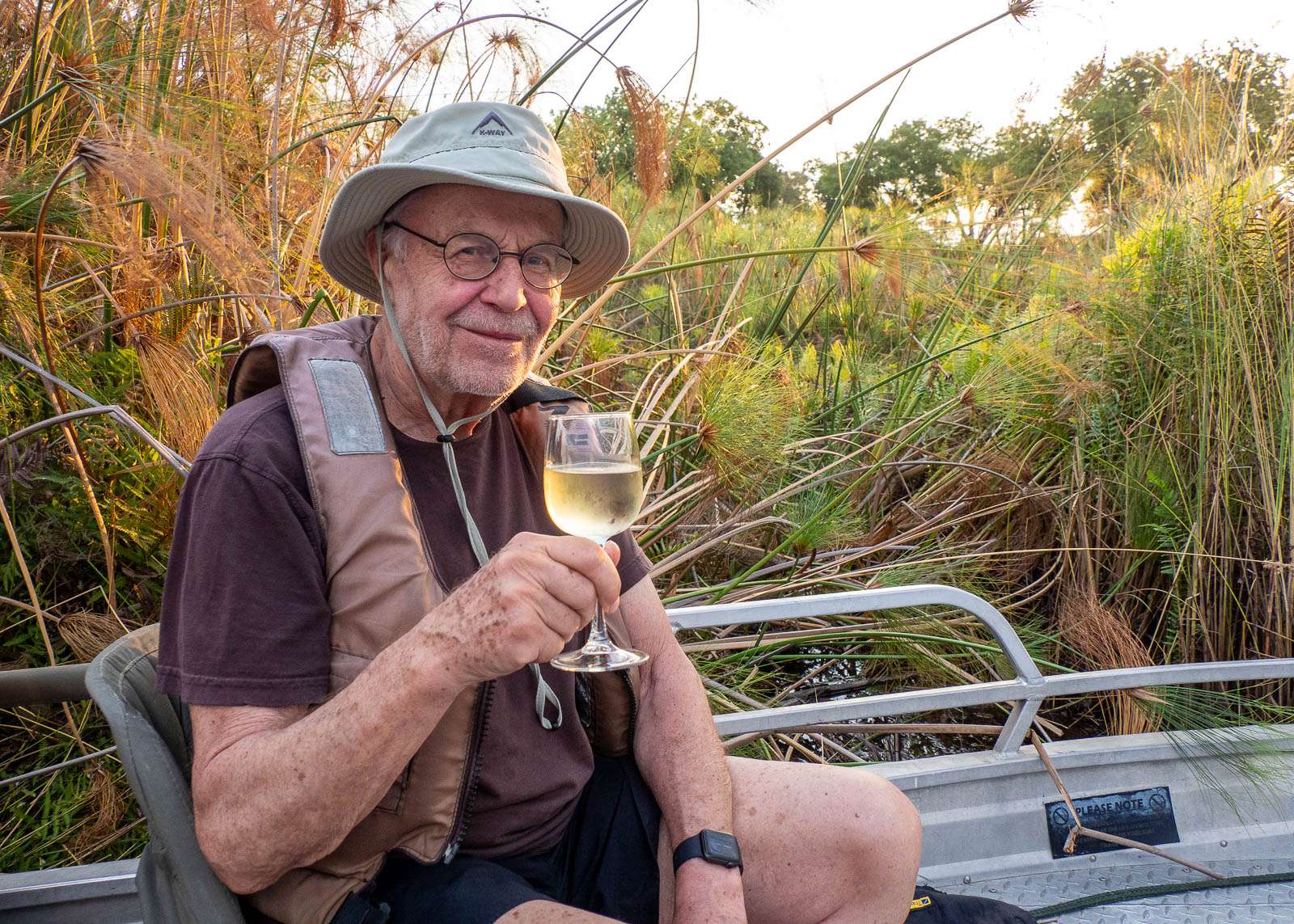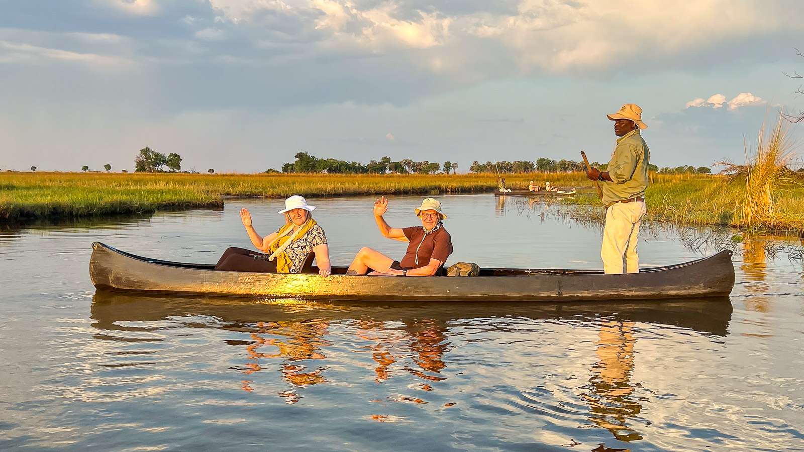 Mokoro-veneretkemme alkoi Camp Okavangon kiitoradan reunalta. Kuhunkin veneeseen mahtui kaksi matkailijaa veneen perään sijoittuvan oppaan lisäksi. Sen verran ennen lähtöä oli tarjolla turvallisuuskoulutusta, että pelastusliivit kehotettiin pukemaan päälle ja pitämään kädet poissa veneestä mahdollisten krokotiilien varalta? Vesi ei sinänsä ole vaarallista, eli vedessä ei kuulemma ole mitään erityisesti varottavia loisia, esimerkiksi.