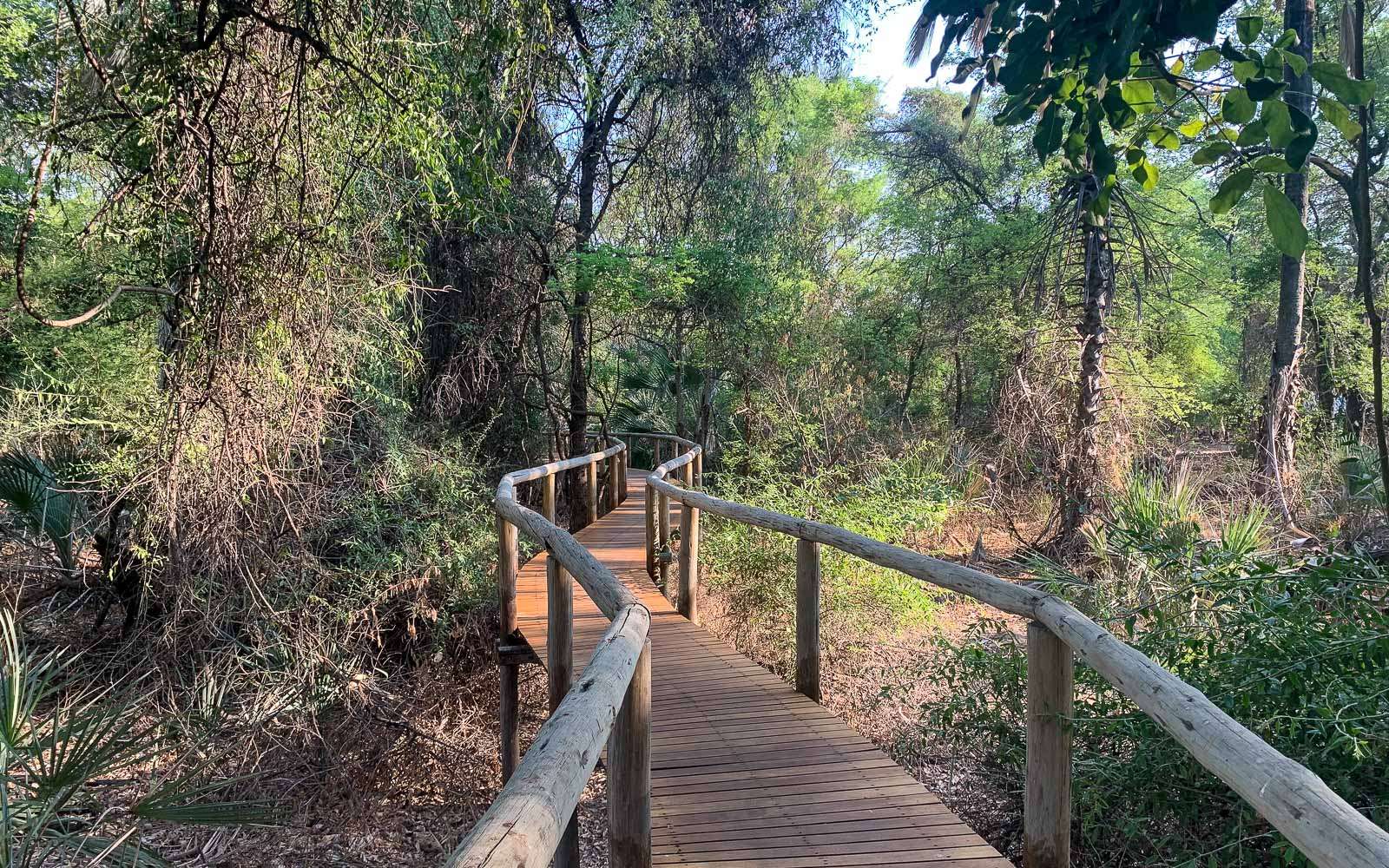 Camp Okavango oli rakennettu paalujen varaan, eli niin majoitusteltat kuin ravintolat ja muut yhteiset tilat sijaitsivat parin metrin korkeudessa. Kulku paikasta toiseen tapahtui puusiltoja pitkin. Jos Camp Xakanaxassa leirin alueella saattoi liikkua vaikka virtahepo, niin täällä alueella liikkui tyypillisesti paviaaneja ja pieniä bambin näköisiä kirjoantilooppeja. Pahimmillaan paviaanit mekastivat telttojen katoilla aamuyöstä heti auringonnousun jälkeen siinä määrin, että muutenkin aikainen kello kuuden herätys oli käytännössä vielä vähän aikaisemmin!