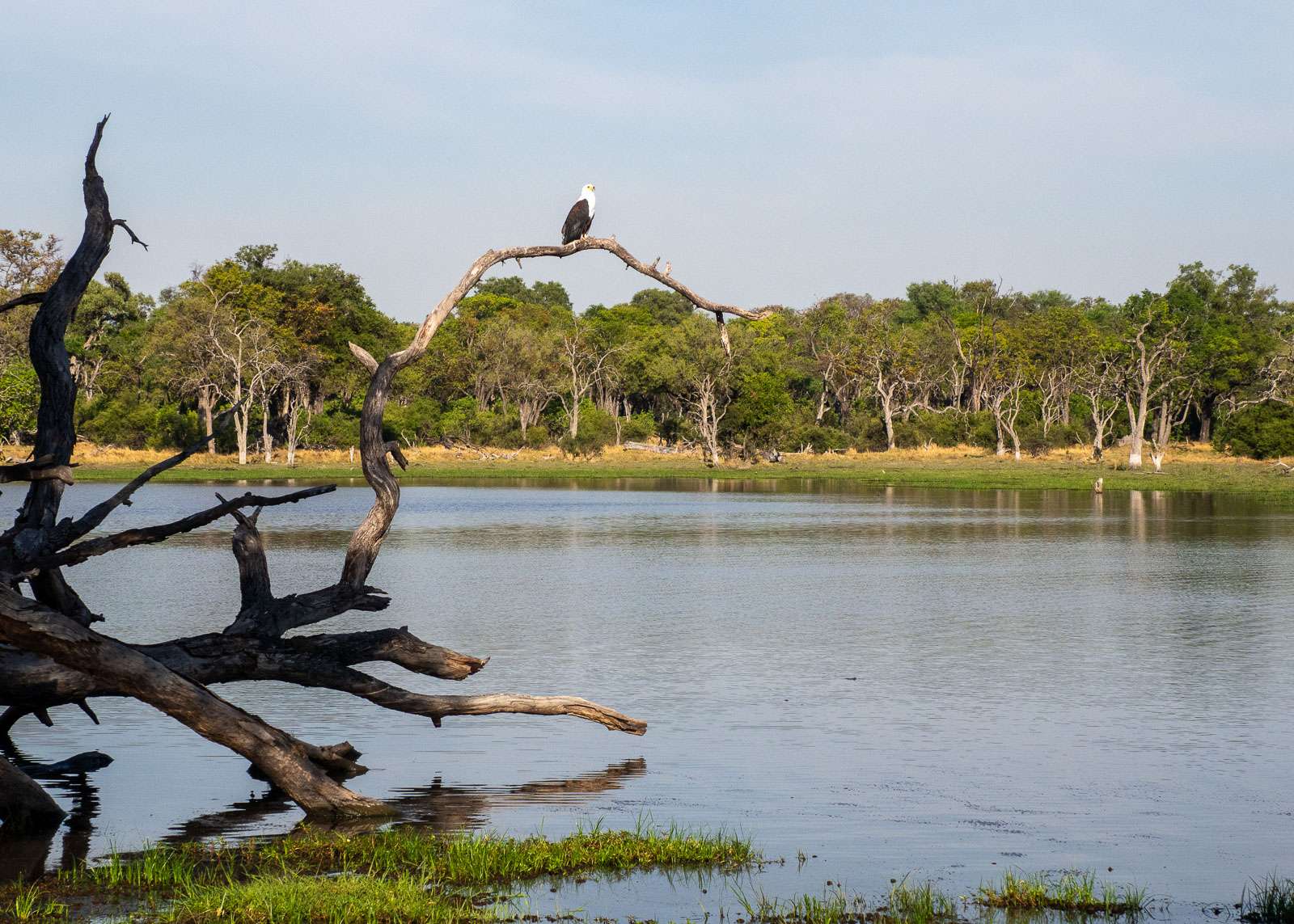 Ensimmäinen safariajomme Camp Xakanaxassa, Moremin riistansuojelualueella, oli vauhdikas kierros Big Fiven isoja eläimiä bongaten. Olo oli jopa hiukan hengästynyt, kun muutaman tunnin kierroksen jälkeen saavuimme leiriin ja totesimme, että nyt ne on nähty, leijoja, leopardi, norsu, puhveli ja virtahepo. Okavangon suistossa sarvikuonot ovat harvinaisia, joten virtahepo saa korvata sen. Vauhdikkaan iltakierroksen vastapainoksi – osittain ääneen ilmaisemamme toiveen takia – seuraavan aamun kierroksella pysähdyimme myös pienempien nisäkkäiden ja lintujen kohdalla.