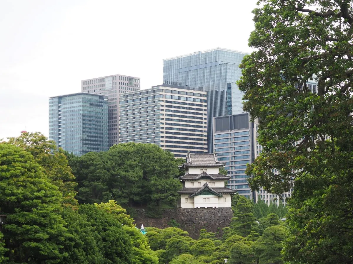 - Keisarillinen palatsi ja joko itäinen puutarha tai Niju-bashin silta uloimmassa puutarhassa