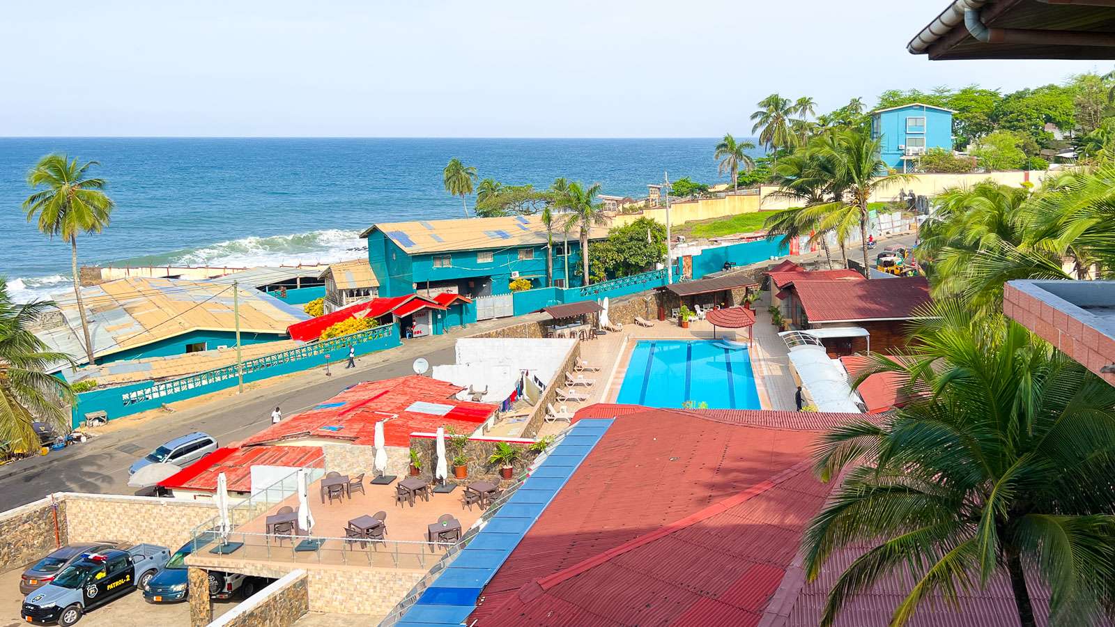 Liberian Monroviaan saavuimme Sierra Leonen Freetownista autolla, kuten tulinkin jo Sierra Leonen ensimmäisessä yhteevedossa kertoneeksi. Hotellimme, The Cape Hotel, sijaitsi Mamba Pointin alueella, jossa kaupungin useimmat hotellit ja monet lähetystöt sijaitsevat. Afrikan maissa, joissa ei juurikaan käy turisteja, vaatimattomampia, eurooppalaisittain vaikka kolmen tähden hotelleja ei juurikaan ole. Pääosa hotellivieraista tulee tänne työskennelläkseen jonkun kansainvälisen järjestön parissa ja arvostavat silloin kodinomaista ympäristöä, siis kodinomaista länsimaisella tasolla – hotellin mainoslauseen mukaisesti “The Cape Hotel is your home away from home”.