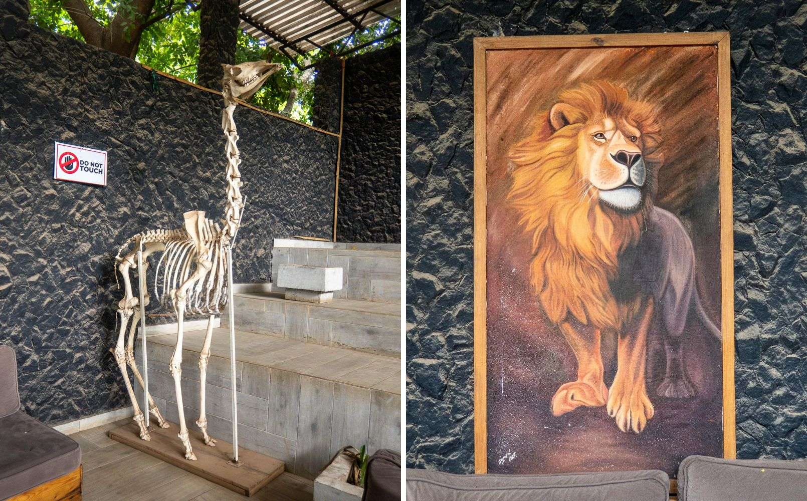 Lopuksi pistäydyimme vielä lyhyesti presidentillisessä eläintarhassa – lähinnä siksi, että alueella olevissa julisteissa oli kuva leijonasta ja rohkenin epäille, että onkohan täällä moista. Kun oppaat väittivät, että on, niin leijonia kuin hyeenoja, niin pitihän ne käydä katsomassa. Tätä eläintarhaa en kyllä ehkä suosittelisi eläinten hyvinvointiin herkästi reagoiville – kannattanee tämän eläintarhan sijaan lähteä vaikka Keniaan safarille.