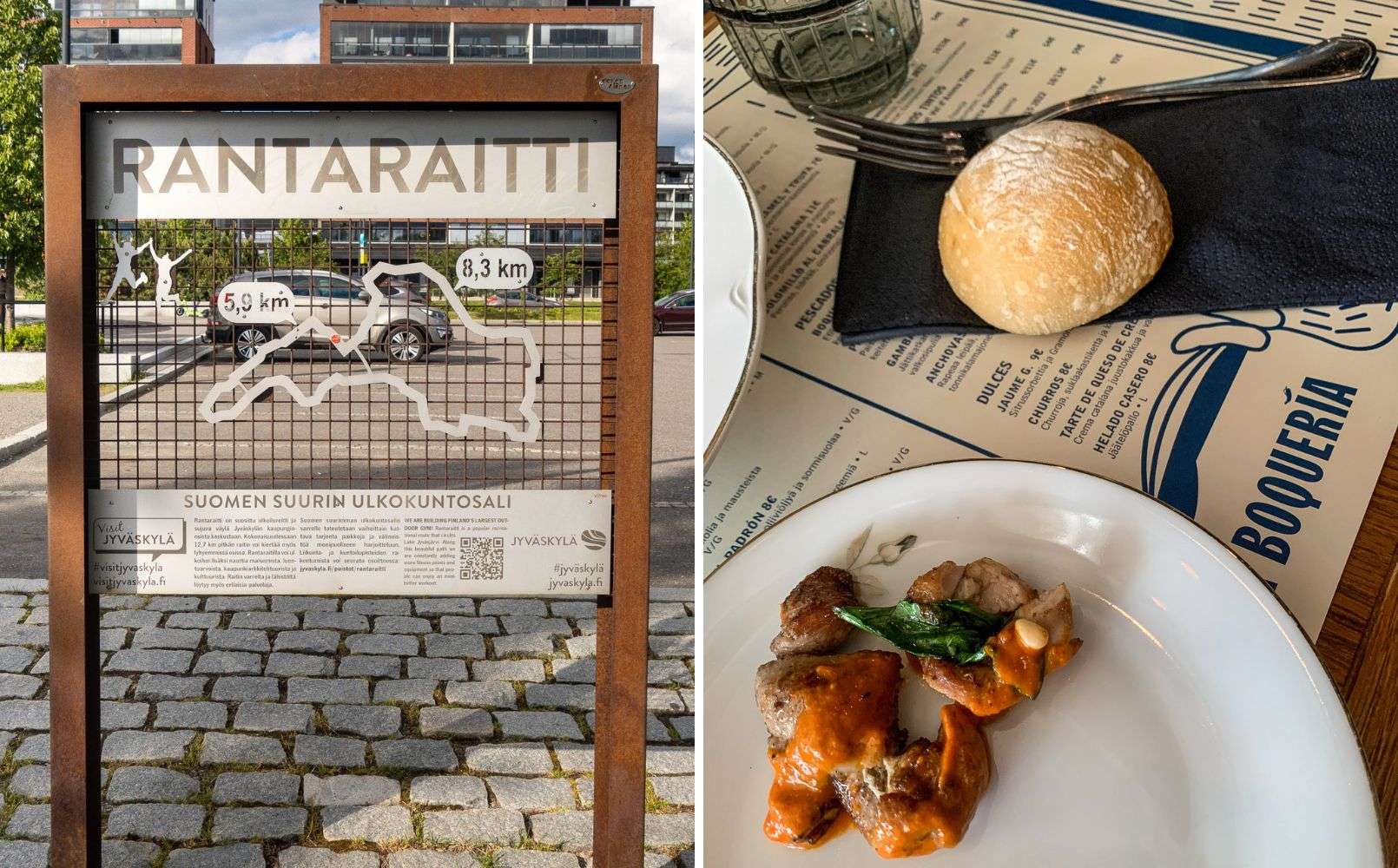 Jyväskylän iltaohjelmaksi päätimme tällä kertaa valita sataman alueen, vaikka kävelymatka sinne olikin vähän ankea etenkin junaradan ylittävältä osuudeltaan. Verson ravintolan sijaan päädyimme näpsimään pieniä annoksia jo La Brava Boqueriaan Maarianhaminan Boquerian hyvien ruokamuistojen innostamana. Nyt meillä onkin sitten hyviä ruokamuistoja myös Jyväskylästä!